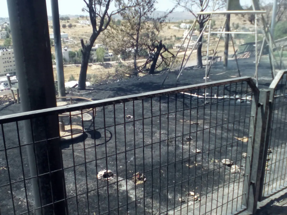 השריפה פגעה בגן משחקים הממוקם סמוך לגדר הישוב.