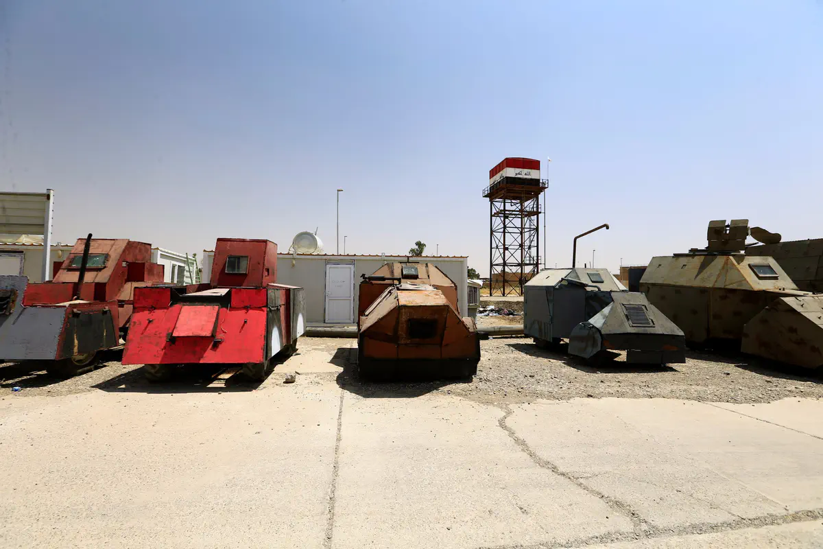 צבא עיראק מציג שורה של מכוניות תופת משוריינות בהן עשה ארגון הטרור דעאש שימוש נגד בסיסים צבאיים.