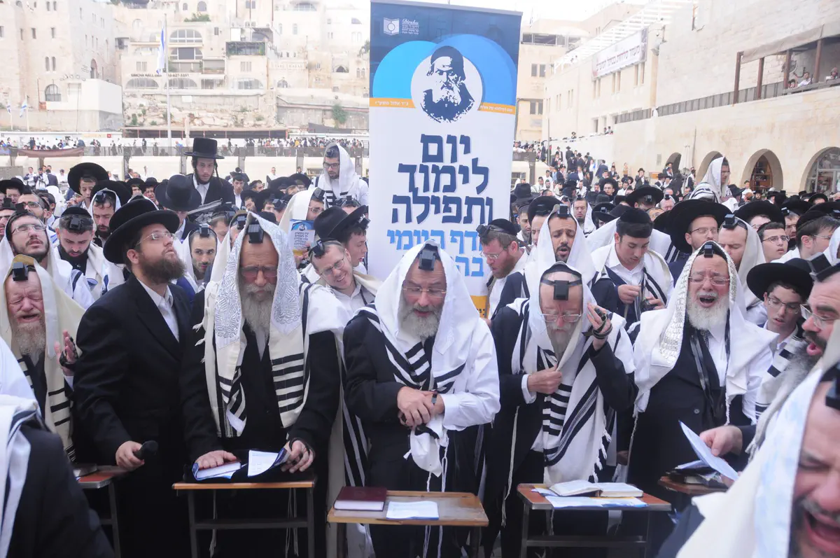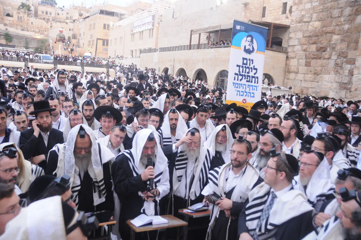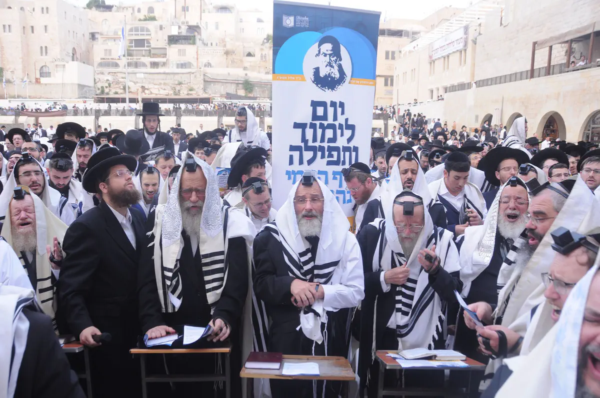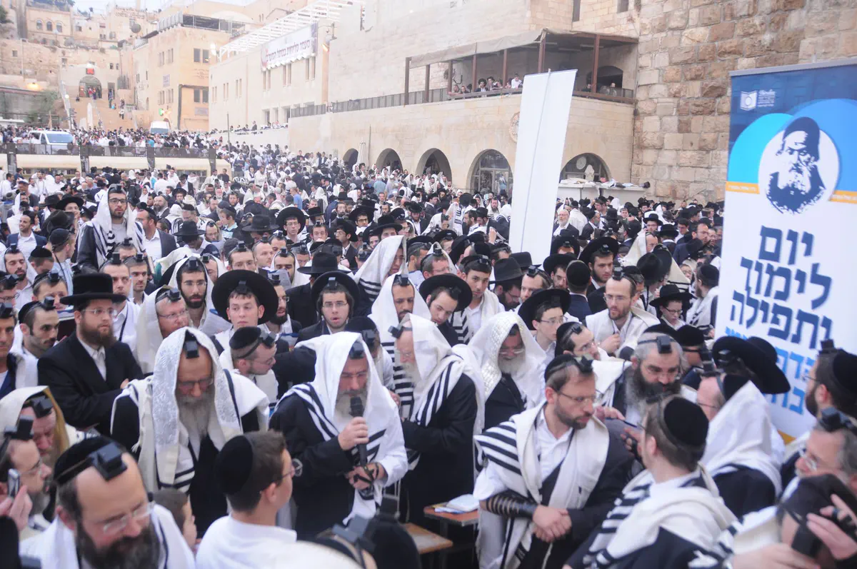 אלפי יהודים לקחו חלק הבוקר (שישי) בתפילה משותפת בכותל המערבי, לרגל יום ההילולה של החפץ חיים - רבי ישראל מאיר הכהן מראדין.