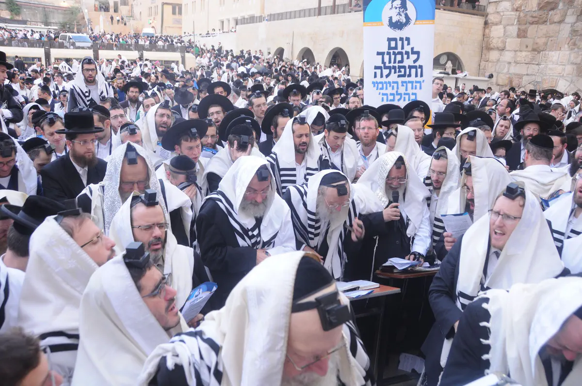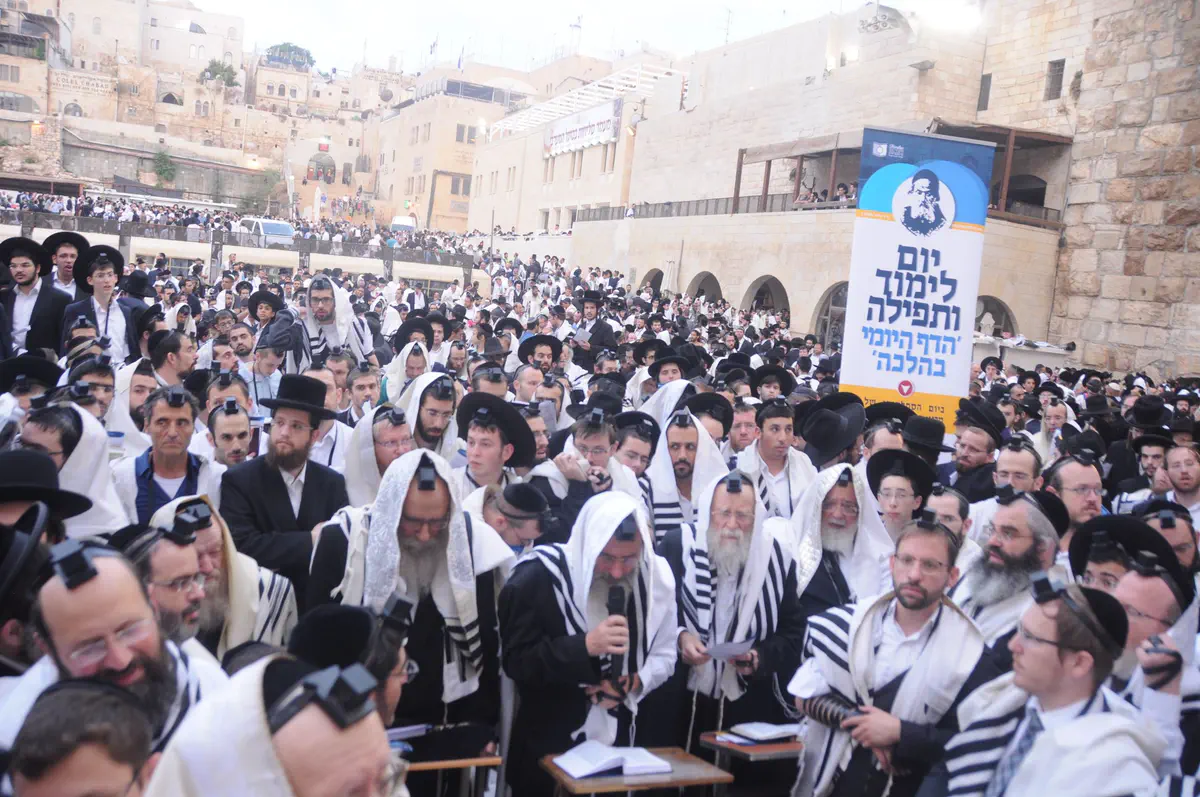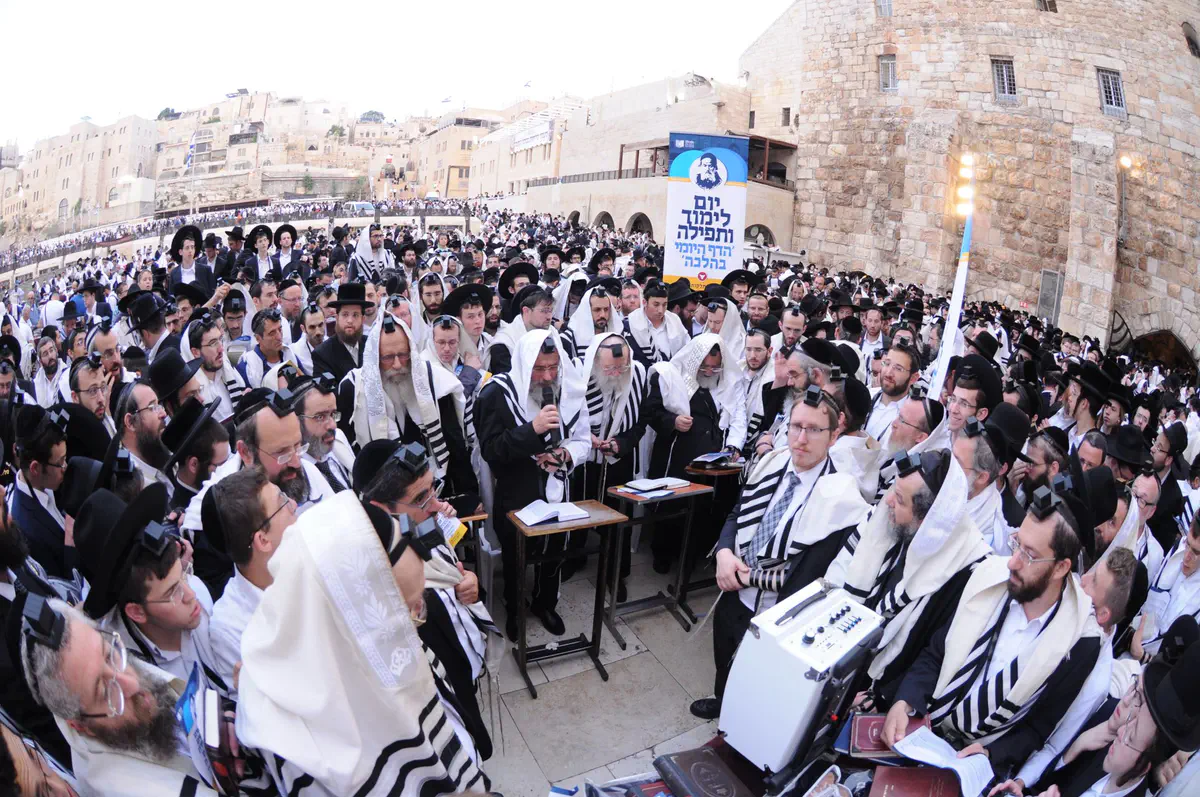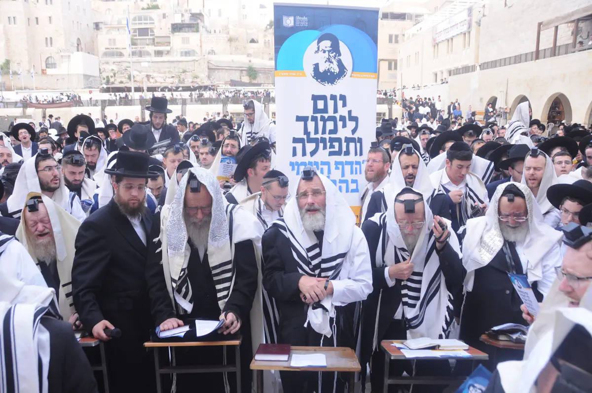 אלפי יהודים לקחו חלק הבוקר (שישי) בתפילה משותפת בכותל המערבי, לרגל יום ההילולה של החפץ חיים - רבי ישראל מאיר הכהן מראדין.