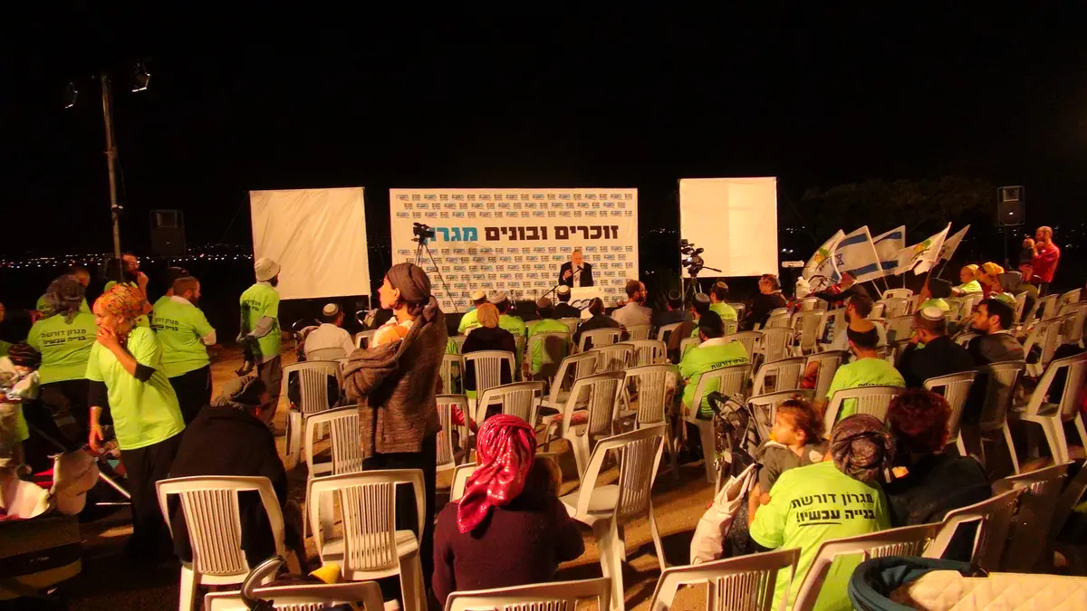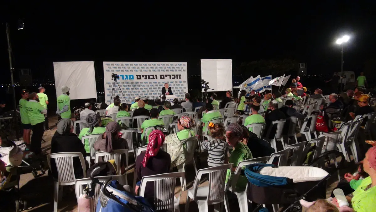 מאות יהודים הגיעו הערב (א') לעצרת לציון חמש שנים להרס היישוב מגרון בבנימין.