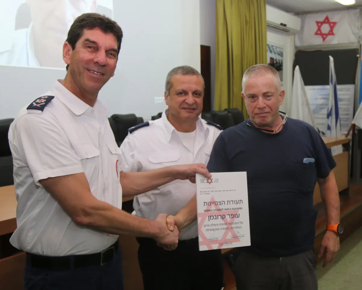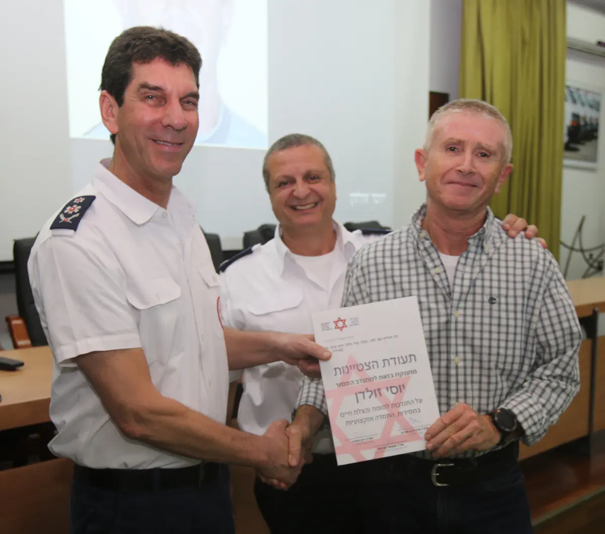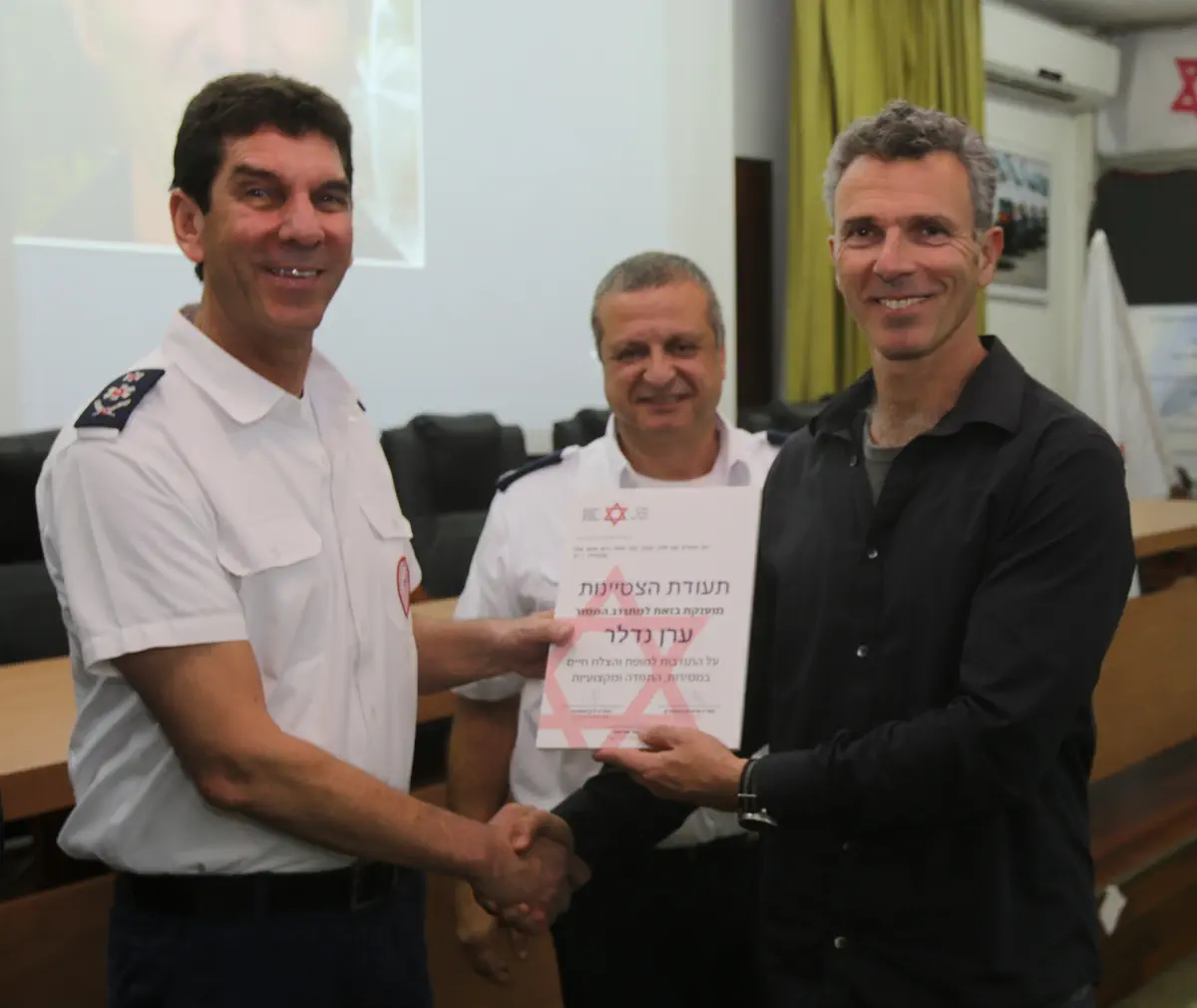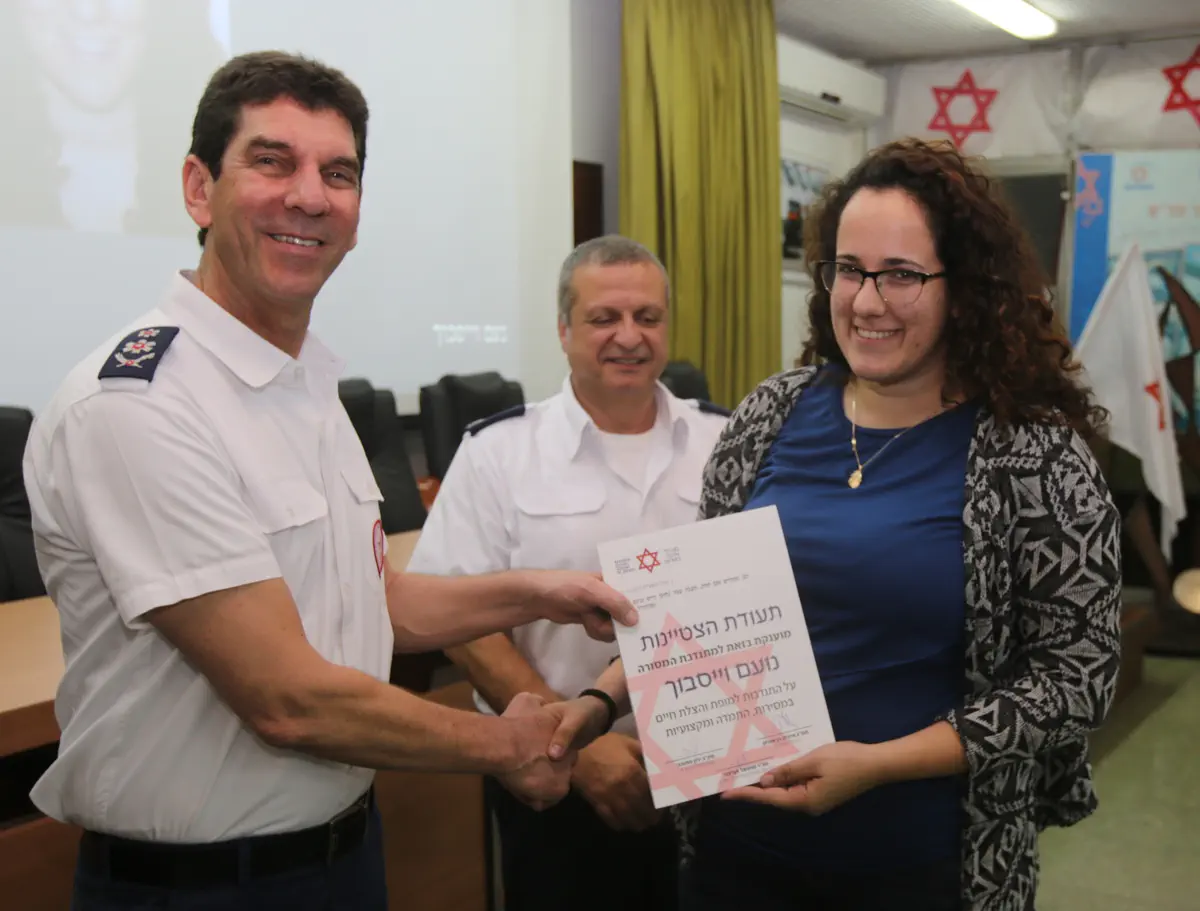 נועם חלדי,ראש מערך המתנדבים הבוגרים במד"א, קיבל מגן הוקרה על תרומתו לפעילות המתנדבים בתחנת מד"א בתל אביב.