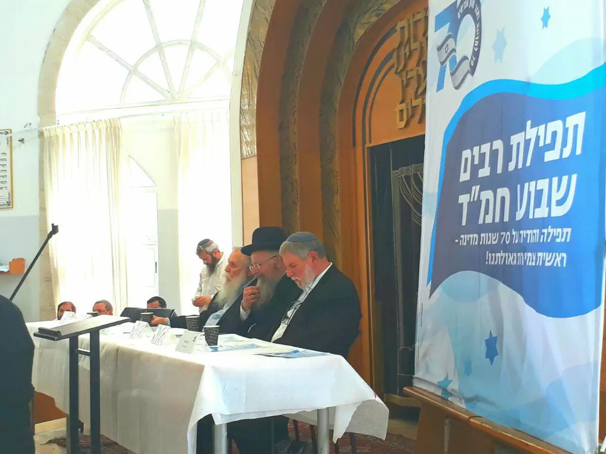 התפילה היתה בסימן הודיה לרגל שבעים שנה למדינה ולגאולתנו במעמד הרבנים – הרב שלמה משה עמאר, הרב חיים דרוקמן, הרב אבי גיסר יו"ר מועצת החמ"ד, הרב ד"ר אברהם ליפשיץ והרב דור- ראש ישיבת חמ"ד חורב.