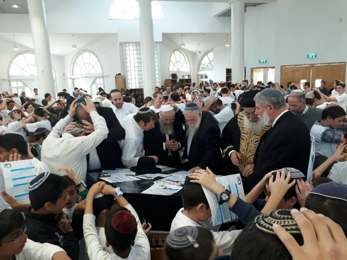 במהלך התפילה נאמרה תפילה לשלום המדינה, פרקי תהילים וההתרגשות היתה גדולה. התלמידים רקדו והתברכו מפי הרבנים.