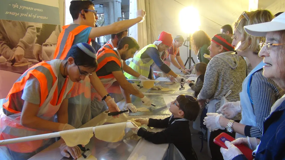 ברחבת עיריית ירושלים, נפתחה היום (שלישי) פעילות "מצה בכיכר" אליה מגיעים המוני ירושלמים ותיירים מכל הארץ כדי לאפות מצות עבודת יד לליל הסדר.