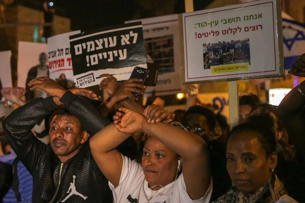 ברחוב המלך ג'ורג' בירושלים הפגינו הערב (רביעי) כמה מאות מסתננים על רקע היוזמה לחוקק מחדש את חוק המסתננים ולגרשם מישראל.