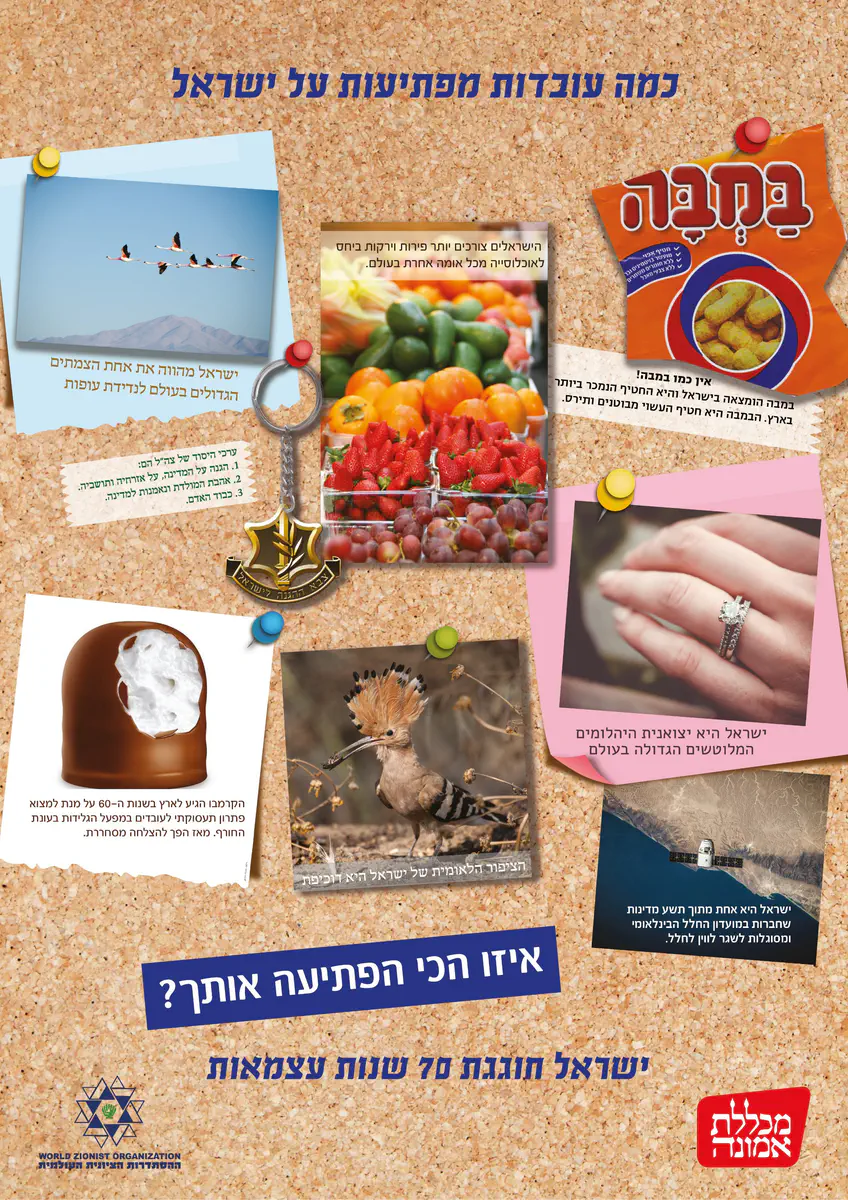 במסגרת תחרות עיצוב כרזות בנושא 70 שנה למדינה, אותה ערכה ההסתדרות הציונית העולמית, התבקשו הסטודנטיות הלומדות בשנה ג' בחוג לתקשורת חזותית במכללת אמונה לעצב כרזות. את הכרזות עיצבו כל אחת מנקודת מבטה הייחודית והאישית, כיצד היא רואה את מדינת ישראל במבט המחבר עבר והווה.