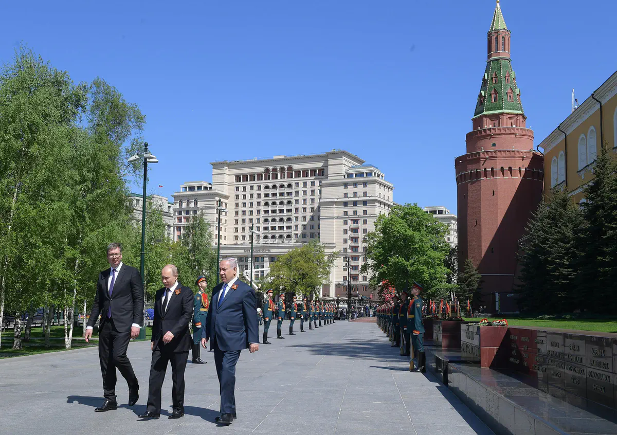 ראש הממשלה בנימין נתניהו השתתף היום (רביעי) יחד עם נשיא רוסיה ולדימיר פוטין ונשיא סרביה אלכסנדר ווצ'יץ' במצעד הניצחון על גרמניה הנאצית לציון 73 שנים, בכיכר האדומה במוסקבה.