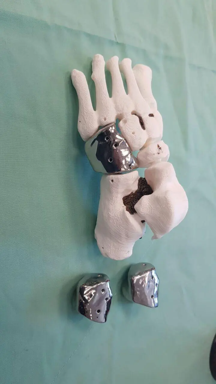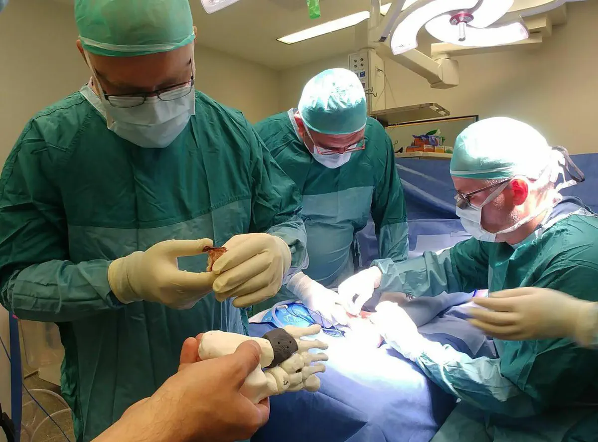המנתחים הסירו בניתוח את החלק הנגוע של העצם והחליפו אותו בשתל המודפס.