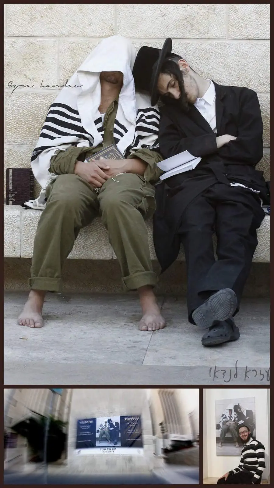 יצירה נוספת בולטת שזכתה לתהודה עולמית, היא תמונתו של האמן עזרא לנדאו, הנקראת "כתף אל כתף", בה מונצחים חייל לבוש מדים ותלמיד ישיבה חסידי נשענים ישנים זה על זה, בליל ט' באב ברחבת הכותל המערבי.