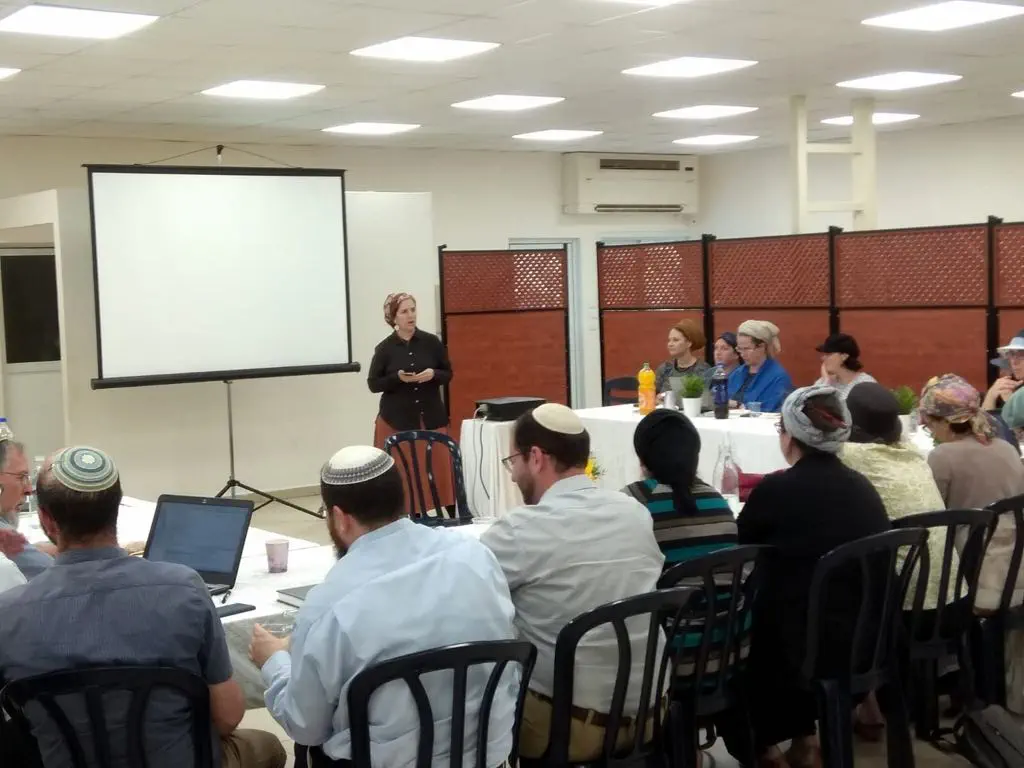 הרבנית מלמד נתנה לאורחות ולאורחים סקירה על תהליך הקמת היישוב והמוסדות, על התפתחותם, צמיחתם ועל התכניות השונות שהישיבה מפעילה לבוגרים ולבני משפחותיהם בבית המדרש ומחוץ לו.