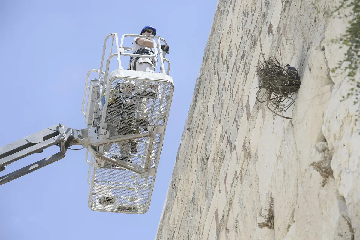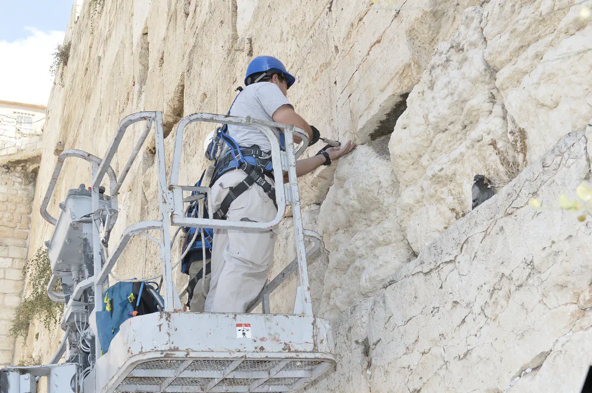 כאמור, הבוקר גם נעשתה בדיקה תקופתית של יציבות אבני הכותל, כולל אזור קשת וילסון המקורה וקיר בנין המחכמה. במהלך הבדיקה מנקים את נדבכי הכותל מחפצים שונים שאותם מביאות הציפורים וכן מסירים חלקי אבן רופפים וחלקי טיח רופף בין האבנים.