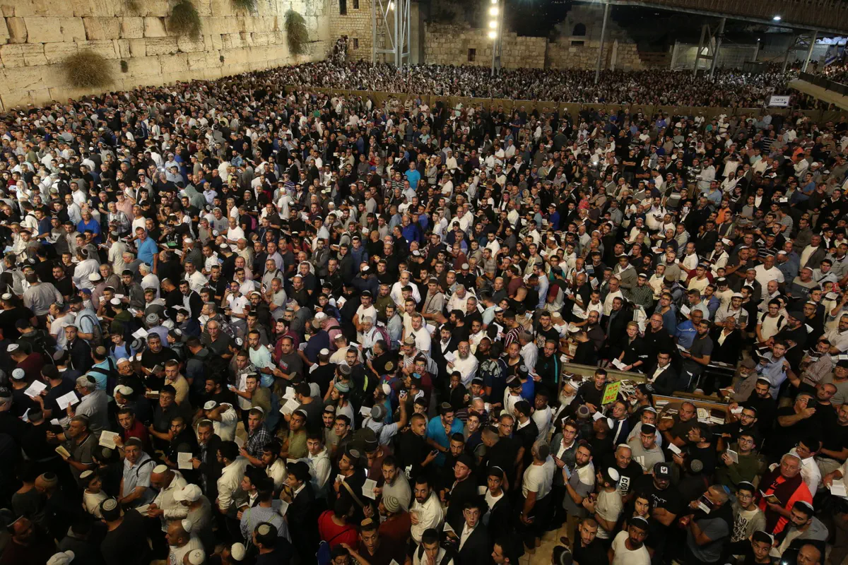ערוץ 7בארץרבבות יהודים בסליחות בכותל המערבירבבות יהודים בסליחות בכותל המערביעשרות אלפי גברים ונשים מכל רחבי הארץ השתתפו הלילה (שישי) במעמד הסליחות המרכזי של איגוד רבני קהילות.ערוץ 7ה' בתשרי תשע"ט 14.09.18, 8:23הכותל המערביסליחותהרב עמיחי אליהורבבות יהודים בסליחות בכותל המערביעזרא לנדאו, איגוד רבני קהילות צילום: עזרא לנדאו, איגוד רבני קהילותמצאתם טעות או פרסומת לא ראויה? דווחו לנו