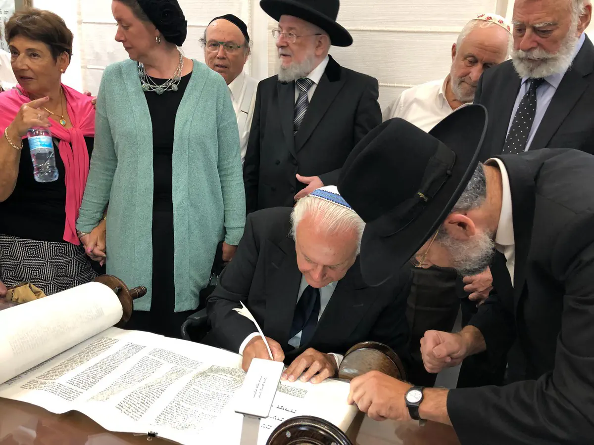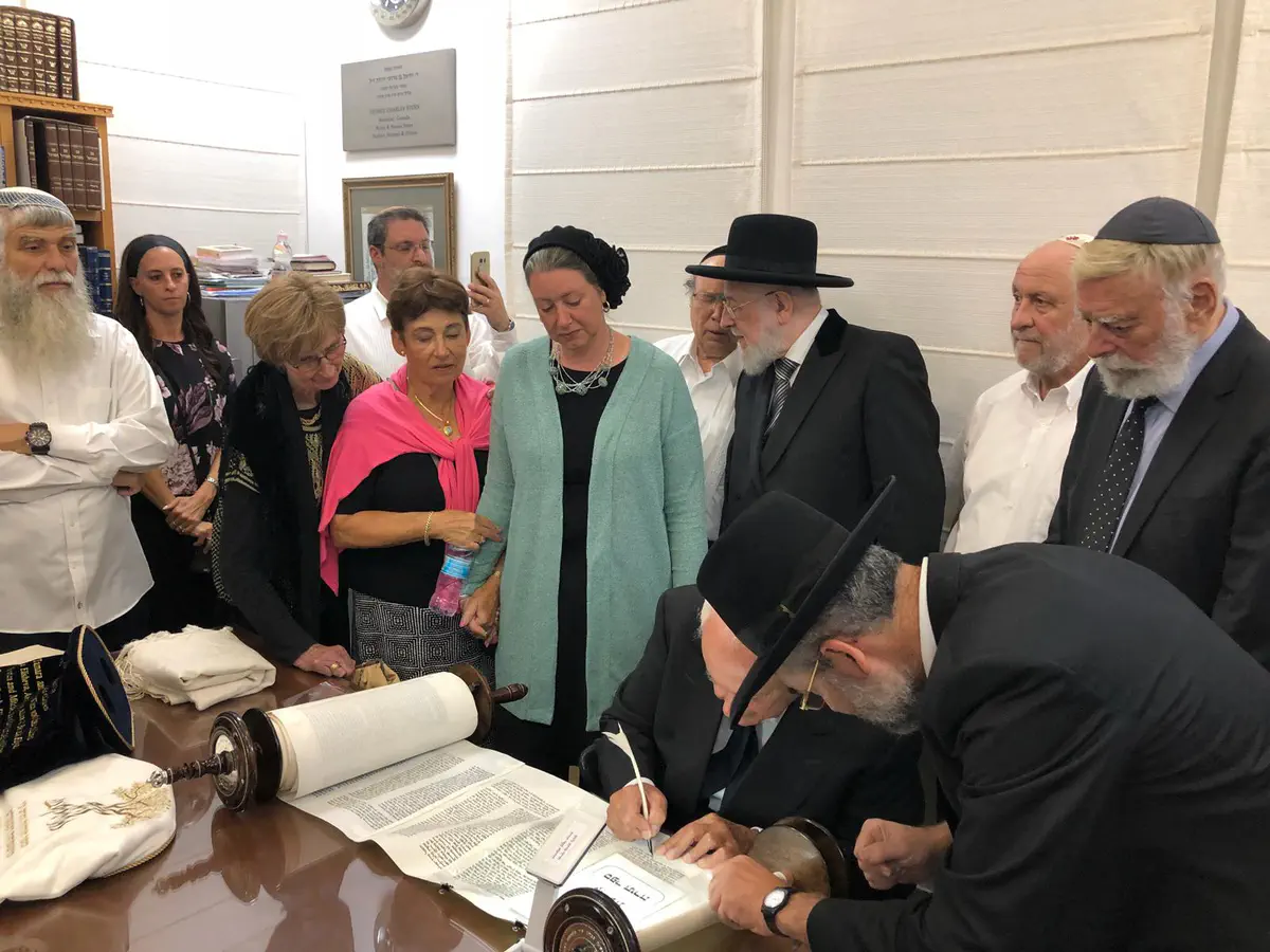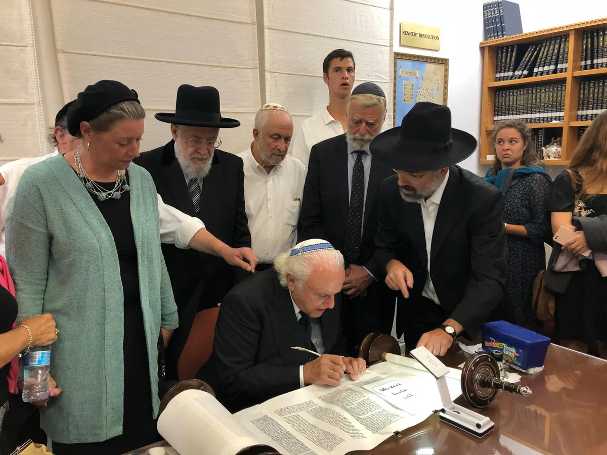 מעמד כתיבת אותיות אחרונות בספרי תורה שתרם רנרט באפריל 2016