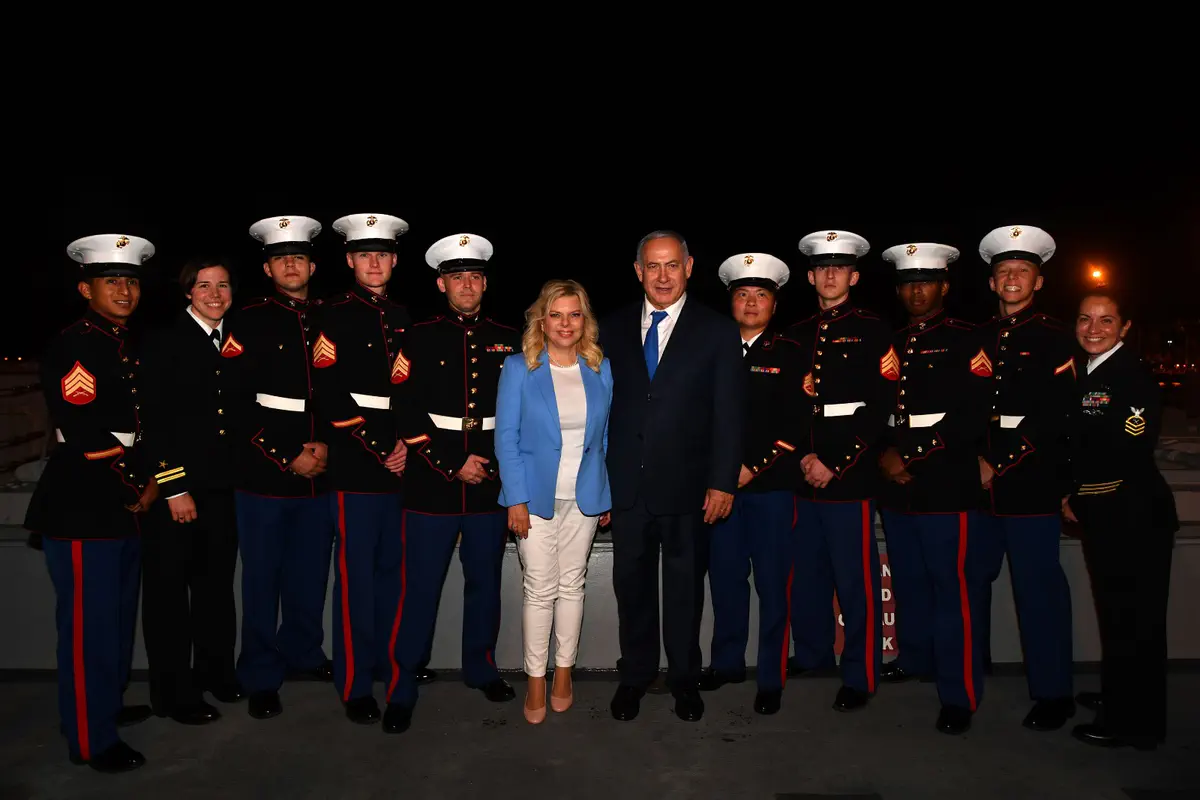 ראש הממשלה בנימין נתניהו ורעייתו שרה נתניהו סיירו (הערב) במשחתת האמריקנית העוגנת בנמל אשדוד יחד עם שגריר ארה”ב בישראל דיוויד פרידמן ורעייתו.