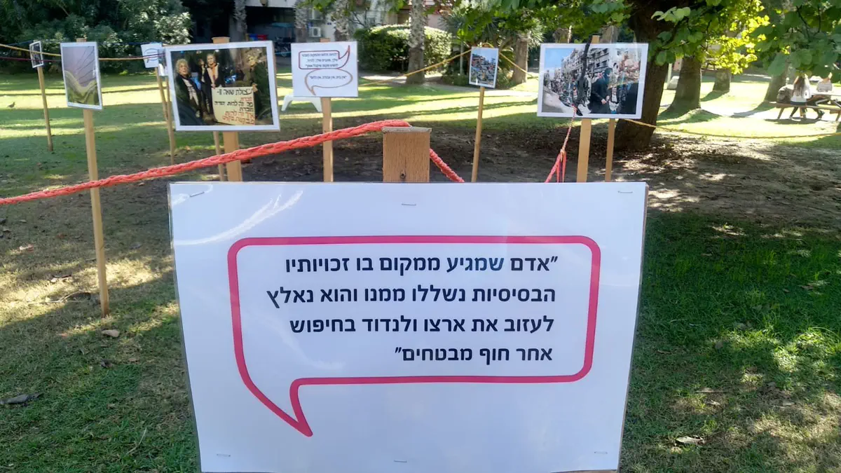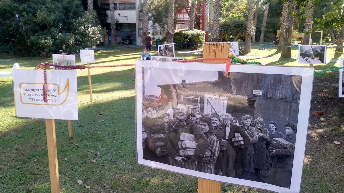 "כשהגענו למקום ראינו בכניסה למכללה מיצג בתוך מתחם של דשא שעוצב כמו בית קברות עם מצבות. כשהתקרבתי וראיתי את התוכן עברה בי צמרמורת. בחלק מהתמונות מופיעים תמונות מהשואה עם יהודים שלובשים כותנות ממחנות ההשמדה ולצידם תמונות של מסתננים לא חוקיים בדרום תל אביב שמוצגים כשווי ערך מתוך מטרה ללמד אותנו איך להתייחס לפליט ומוצגת שם השאלה האם אנחנו כיהודים שכחנו שגם אנחנו היינו פליטים".