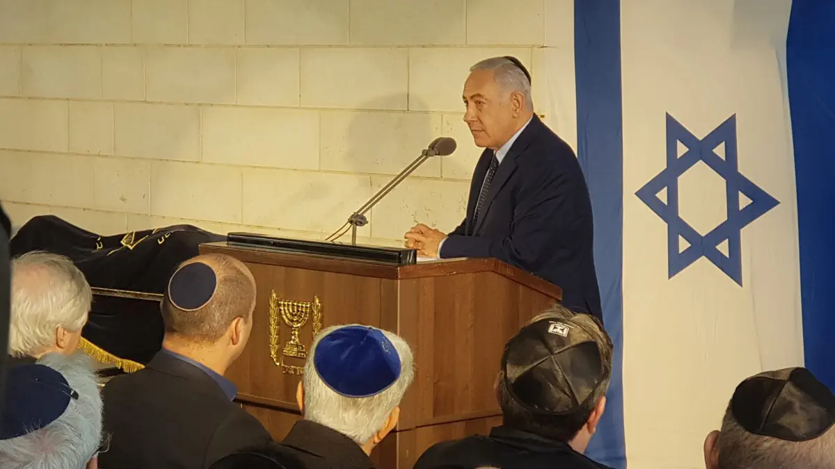 בין המלווים נשיא המדינה ראובן ריבלין, ראש הממשלה בנימין נתניהו, שרים וחברי כנסת.