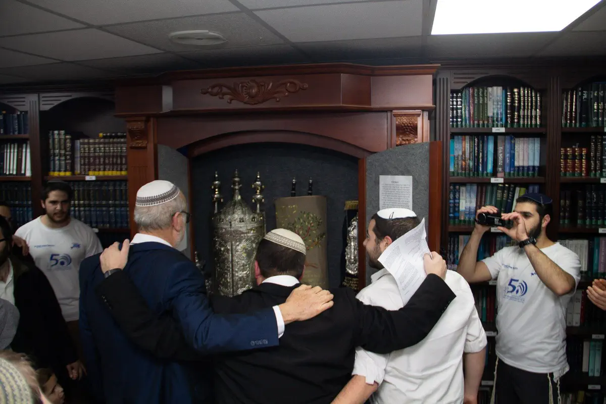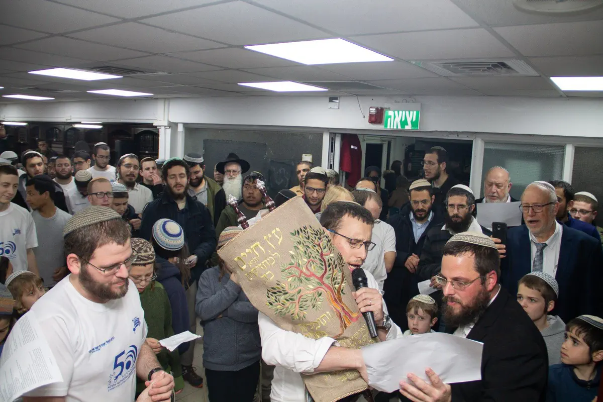 מאות השתתפו אמש (חמישי) בטקס הכנסת ספר תורה חדש לישיבת ההסדר בנצרת עילית.