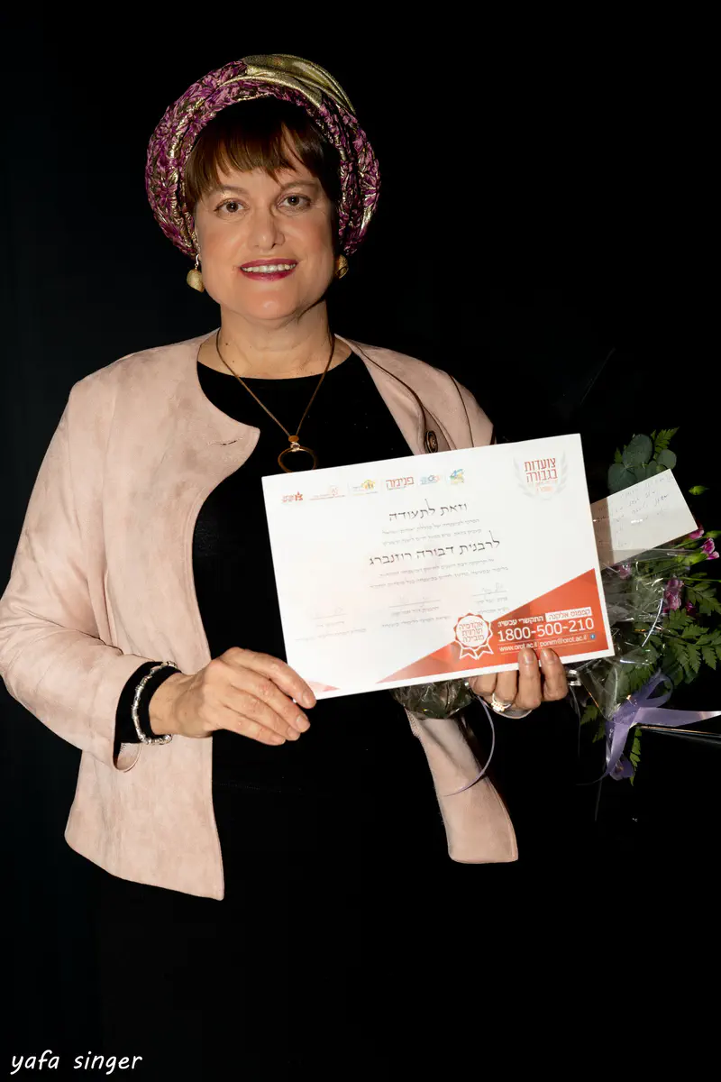 בסיום האירוע העניקו ד"ר חנה קטן וד"ר ציפי ריין פרס מפעל חיים לדבורה רוזנברג על תרומתה לחיזוק המשפחה היהודית בחינוך הממלכתי דתי.