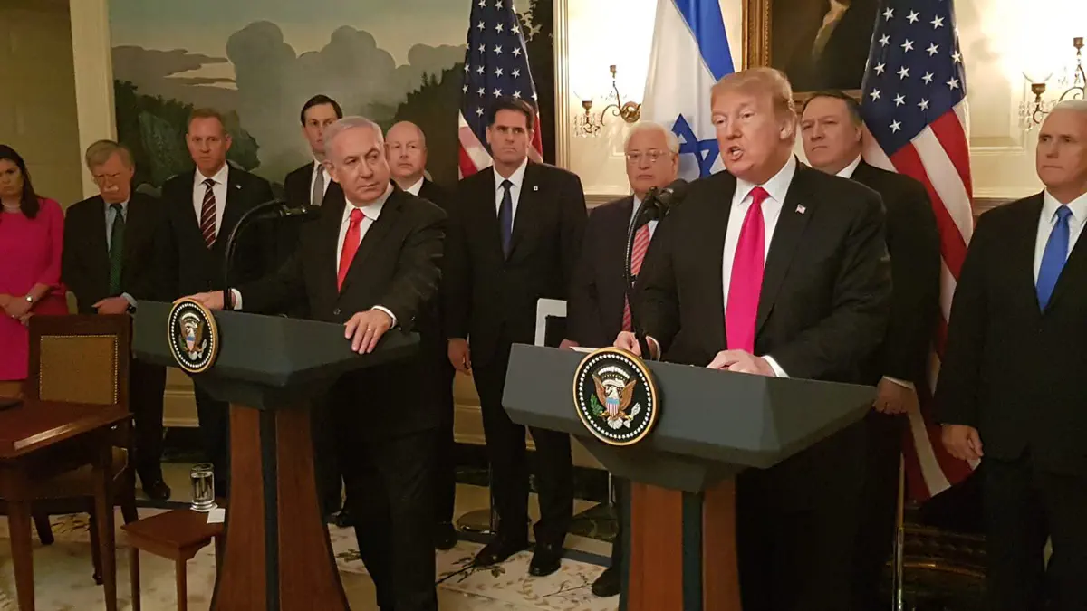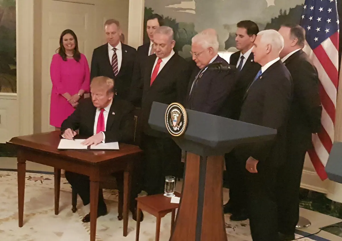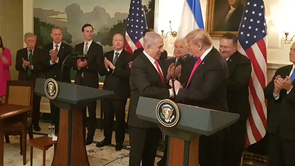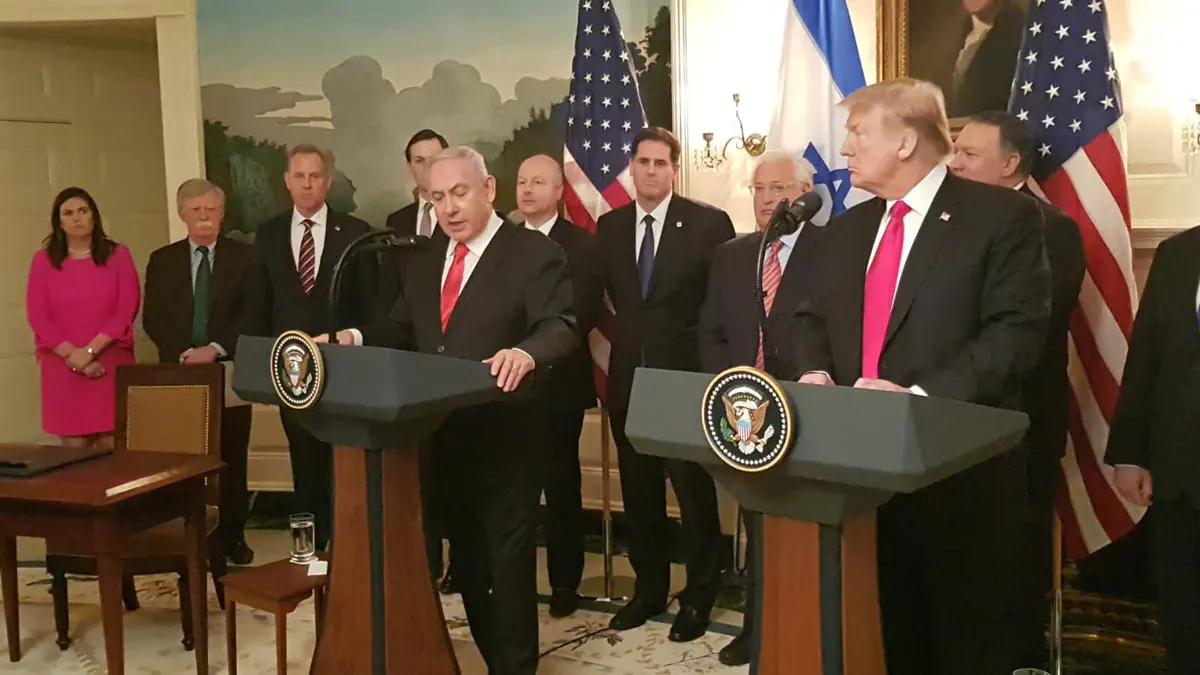 נשיא ארצות הברית, דונלד טראמפ חתם בפתח פגישתו עם ראש הממשלה בנימין נתניהו על הכרה אמריקנית רשמית בריבונותה של ישראל ברמת הגולן.
