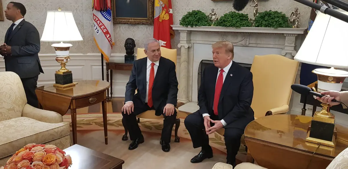 נזכיר כי ביום חמישי הכריז הנשיא האמריקני כי בשלה העת להכרה אמריקנית ברמת הגולן כשטח ישראלי. נתניהו וטראמפ נשאו הצהרות בתחילת המפגש ביניהם