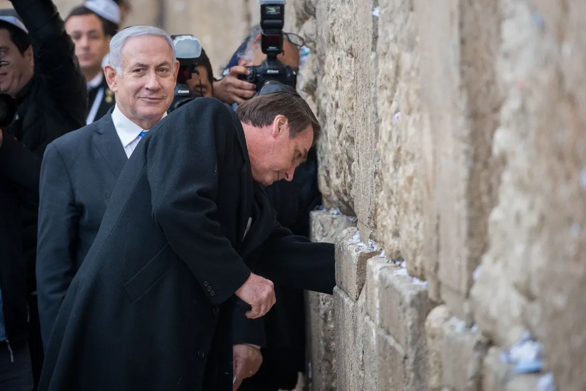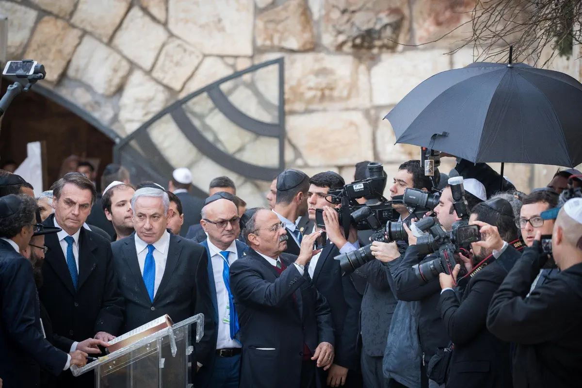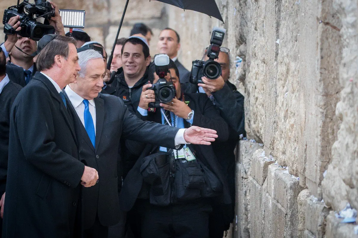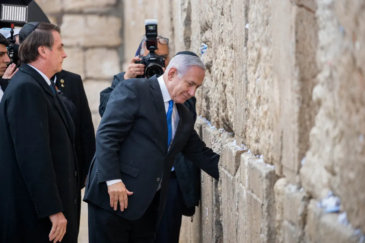 ראש הממשלה נתניהו ונשיא ברזיל בולסונארו ביקרו הערב (שני) ברחבת הכותל והניחו פתק בכותל.