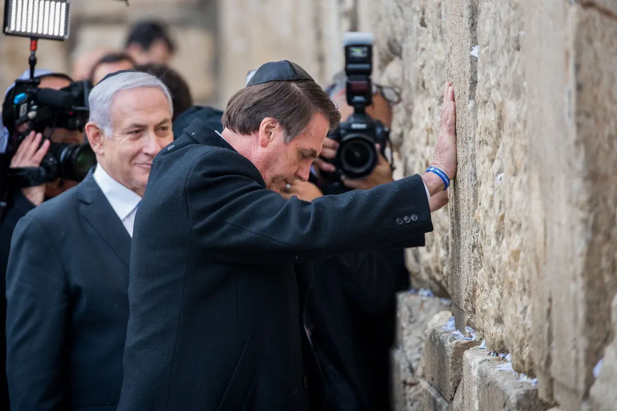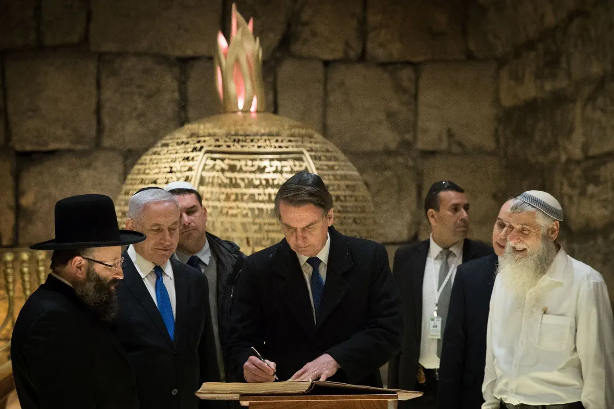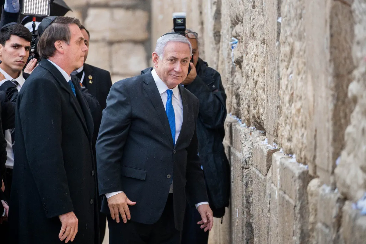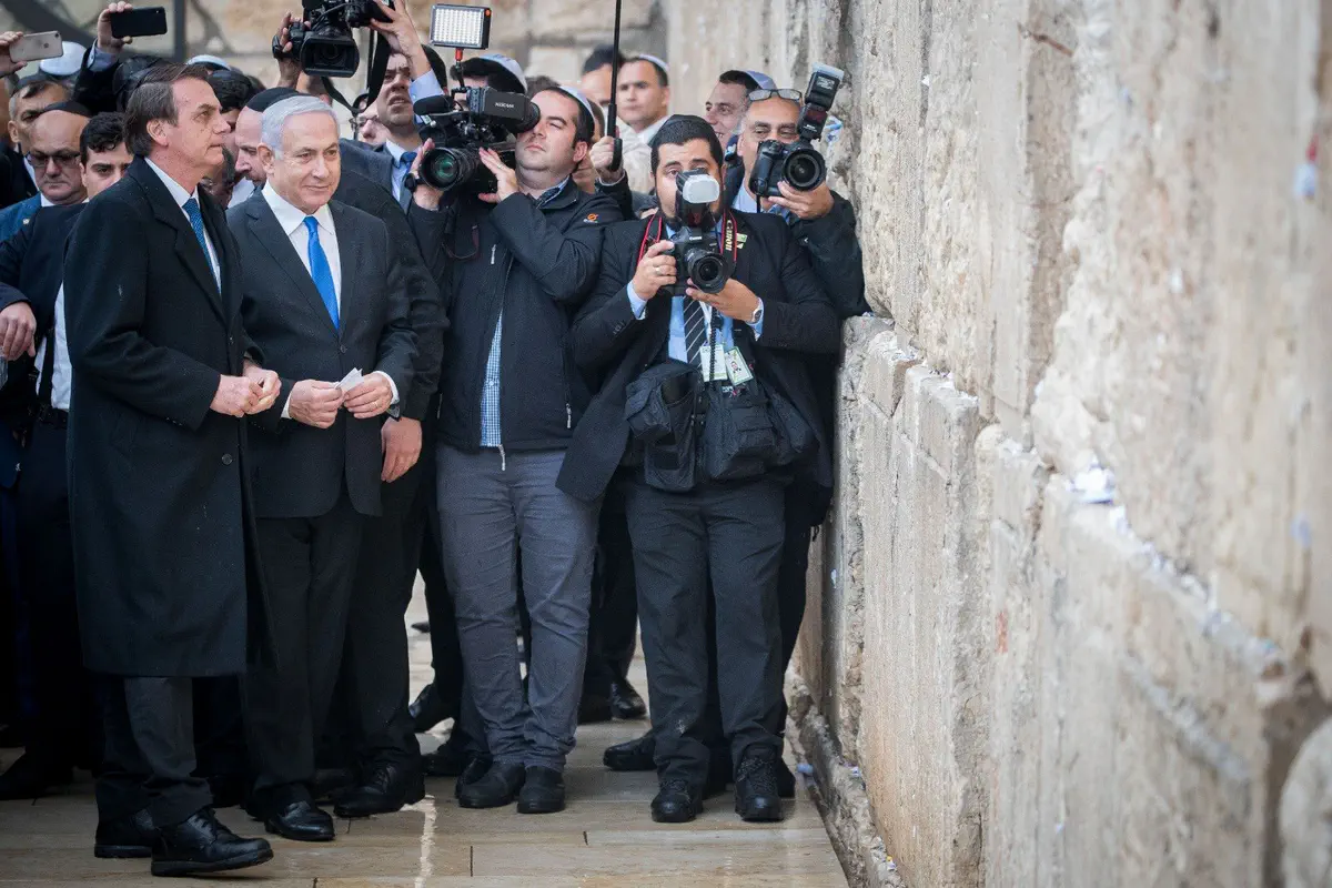 ראש הממשלה נתניהו ונשיא ברזיל בולסונארו ביקרו הערב (שני) ברחבת הכותל והניחו פתק בכותל.