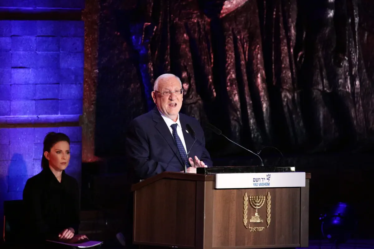"אם אנחנו לא נדע להיות ברורים וחד משמעיים, כיצד נוכל לדרוש מאומות העולם לשאת באחריות ולחנך את הדור הצעיר שלהם לזיכרון השואה ולקחיה? בעקבות התגברות הקולות האנטישמיים, פניתי באחרונה למנהיגיםברחבי העולם כדי להזמין אותם לועידה בינלאומית שתתקיים כאן ביד ושם בחודש ינואר הקרוב, במלאות 75 שנים לשיחרור מחנה אושוויץ. כאן בירושלים, יחד עם נשיאים וראשי מדינות, נשלב ידיים במאבק הבלתי מתפשר באנטישמיות, בגזענות ובהכחשת שואה", דברי ריבלין.