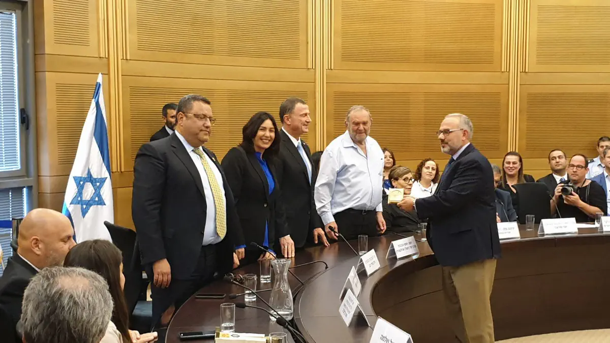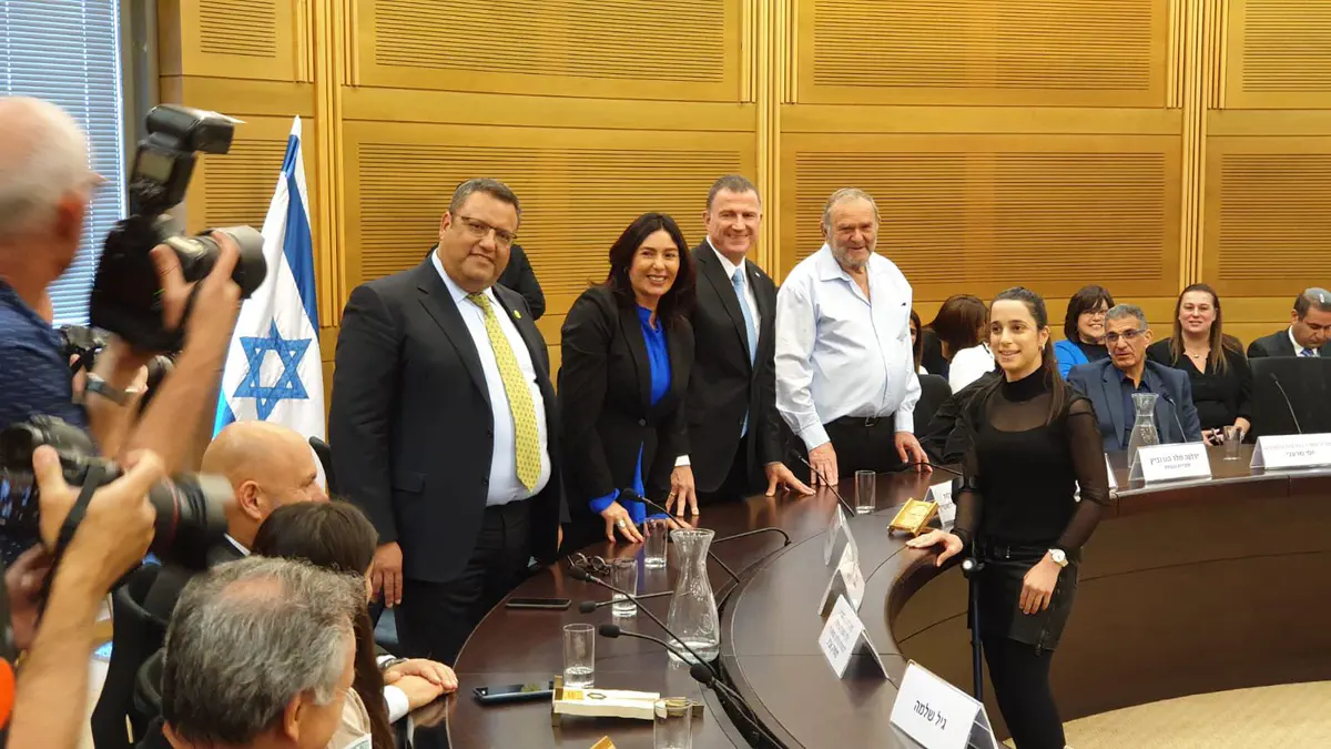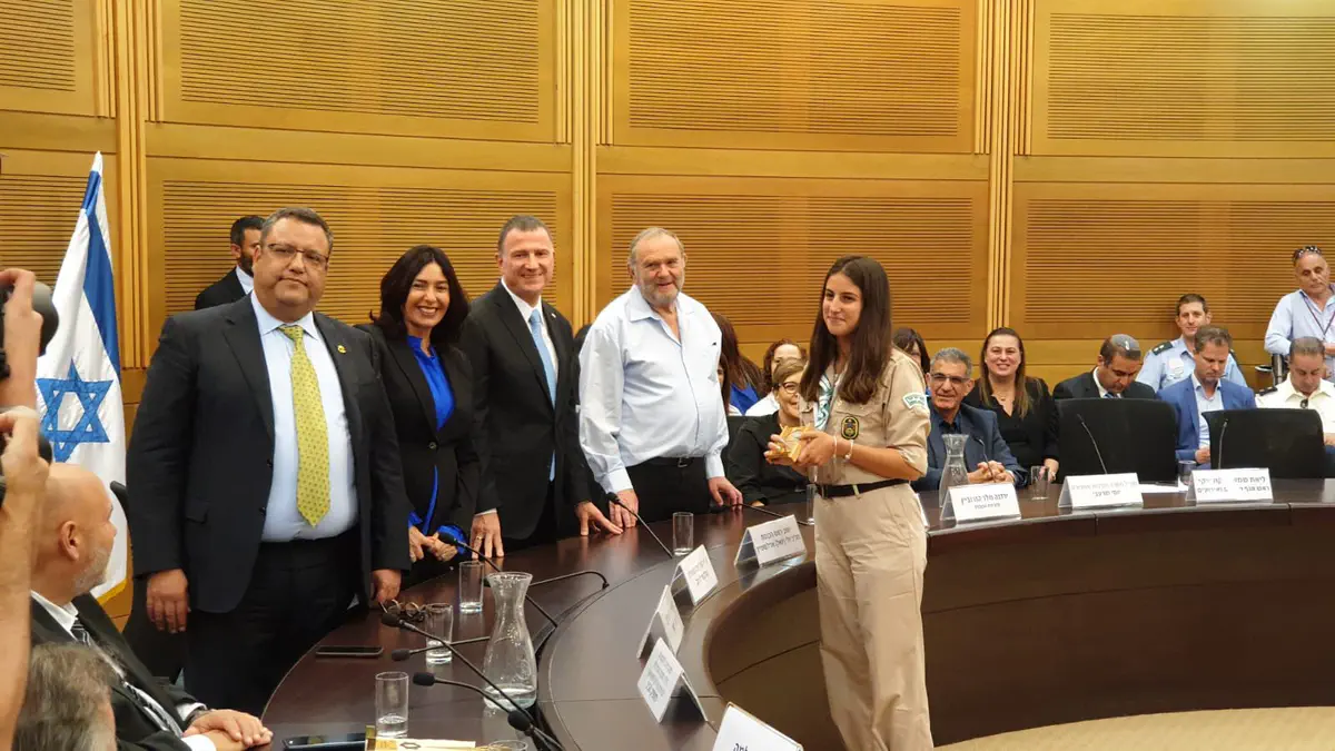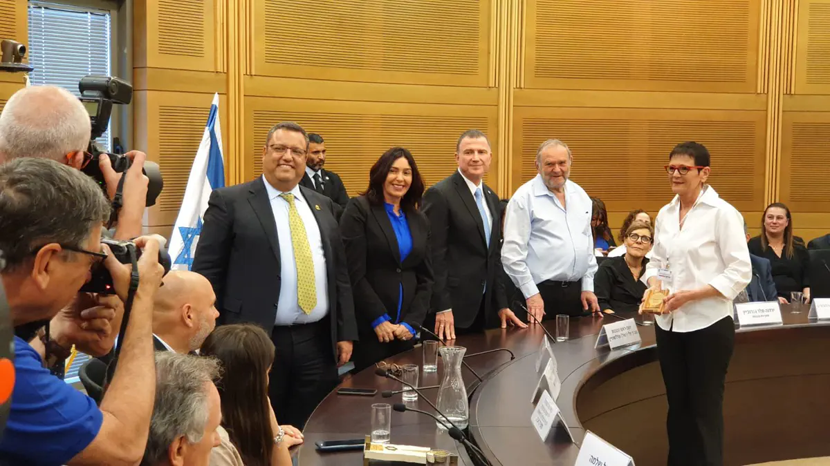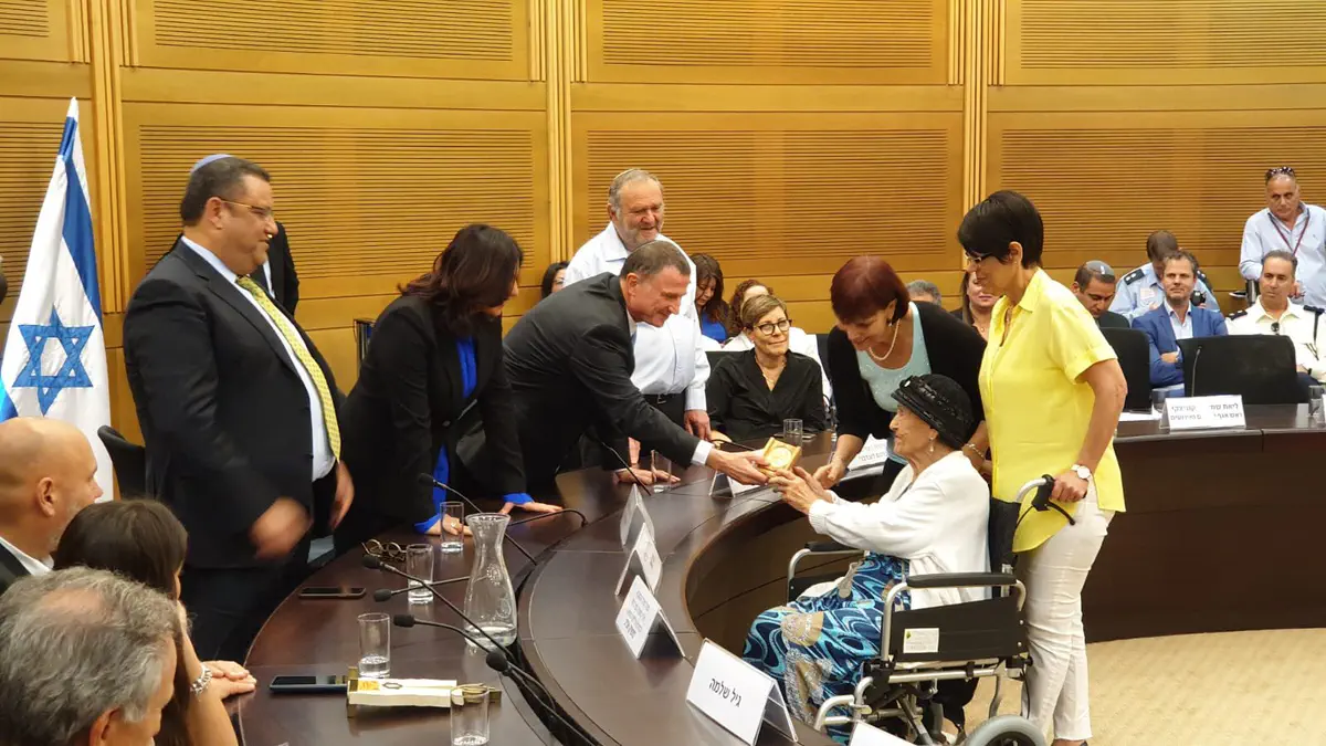 יו״ר הכנסת יולי אדלשטיין הצטלם בצהריים (שני) לצילום המסורתי עם מדליקי המשואות בכנסת.
