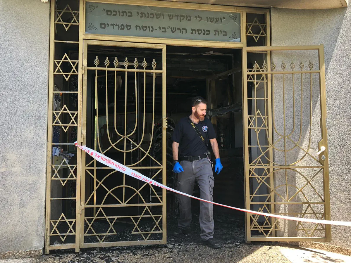 כוחות משטרה רבים חוקרים אחר הצהריים (שישי) מספר מקרי הצתה וציור כתובות נאצה בבית העלמין ובבית הכנסת ביישוב בני עי״ש.