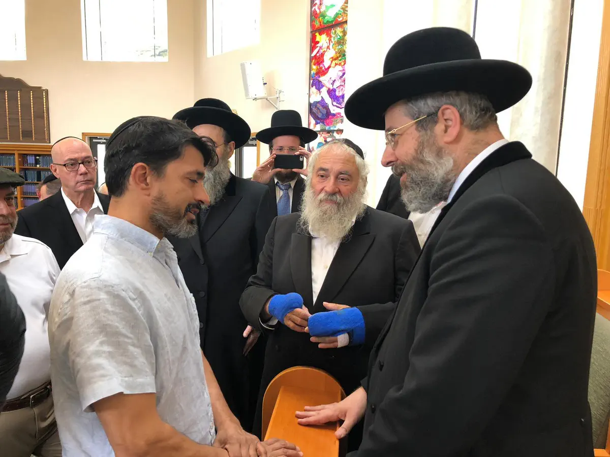 כמו כן הזכיר הרב הראשי את גבורתו של רב בית הכנסת ושליח חב״דהרב גולדשטיין, אשר איבד חלק מאצבעותיו באירוע הקשה, כשגם לאחר שנפצע סייע לבני הקהילה האחרים שהיו זקוקים לכך ורק לאחר מכן פנה לטפל בעצמו.