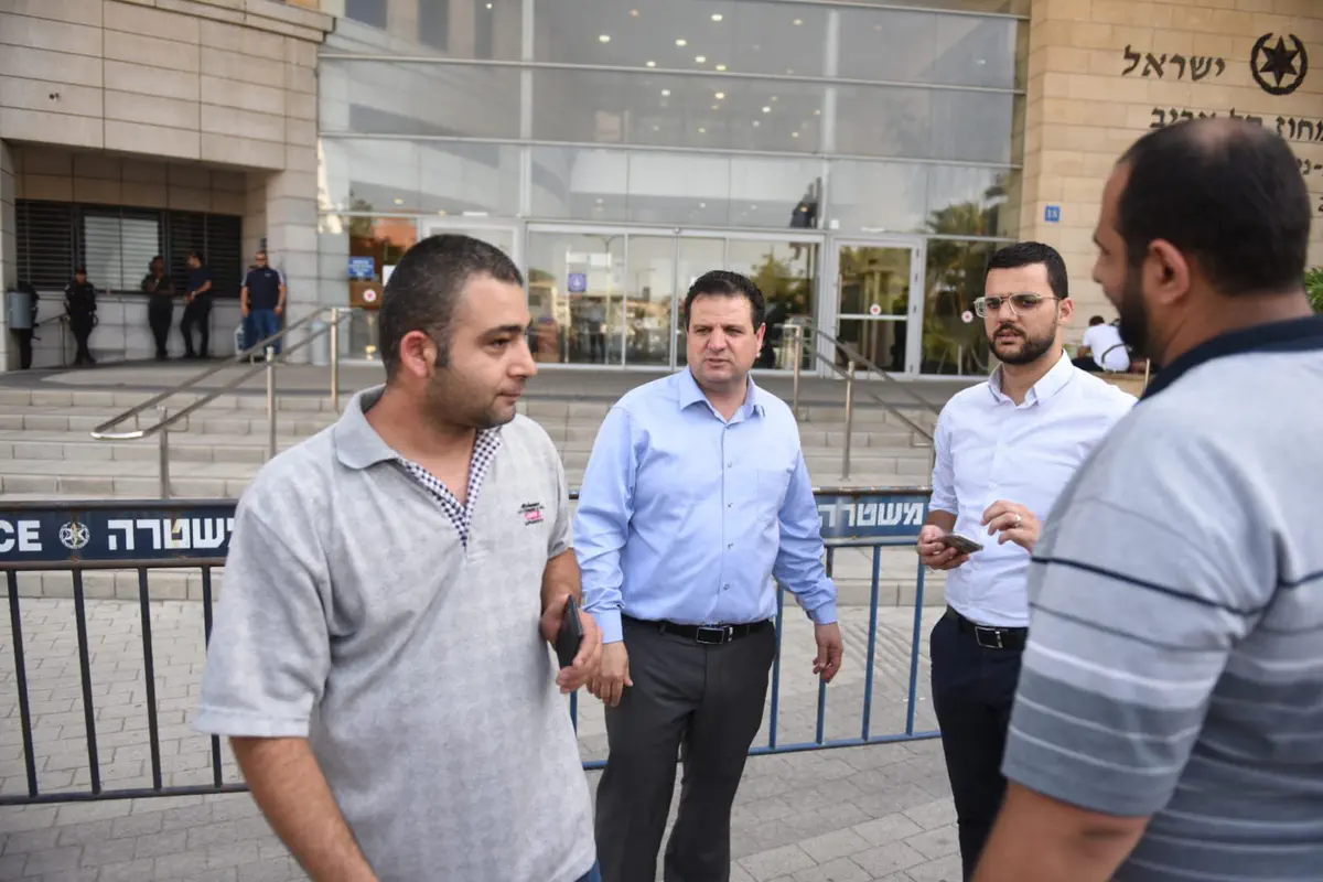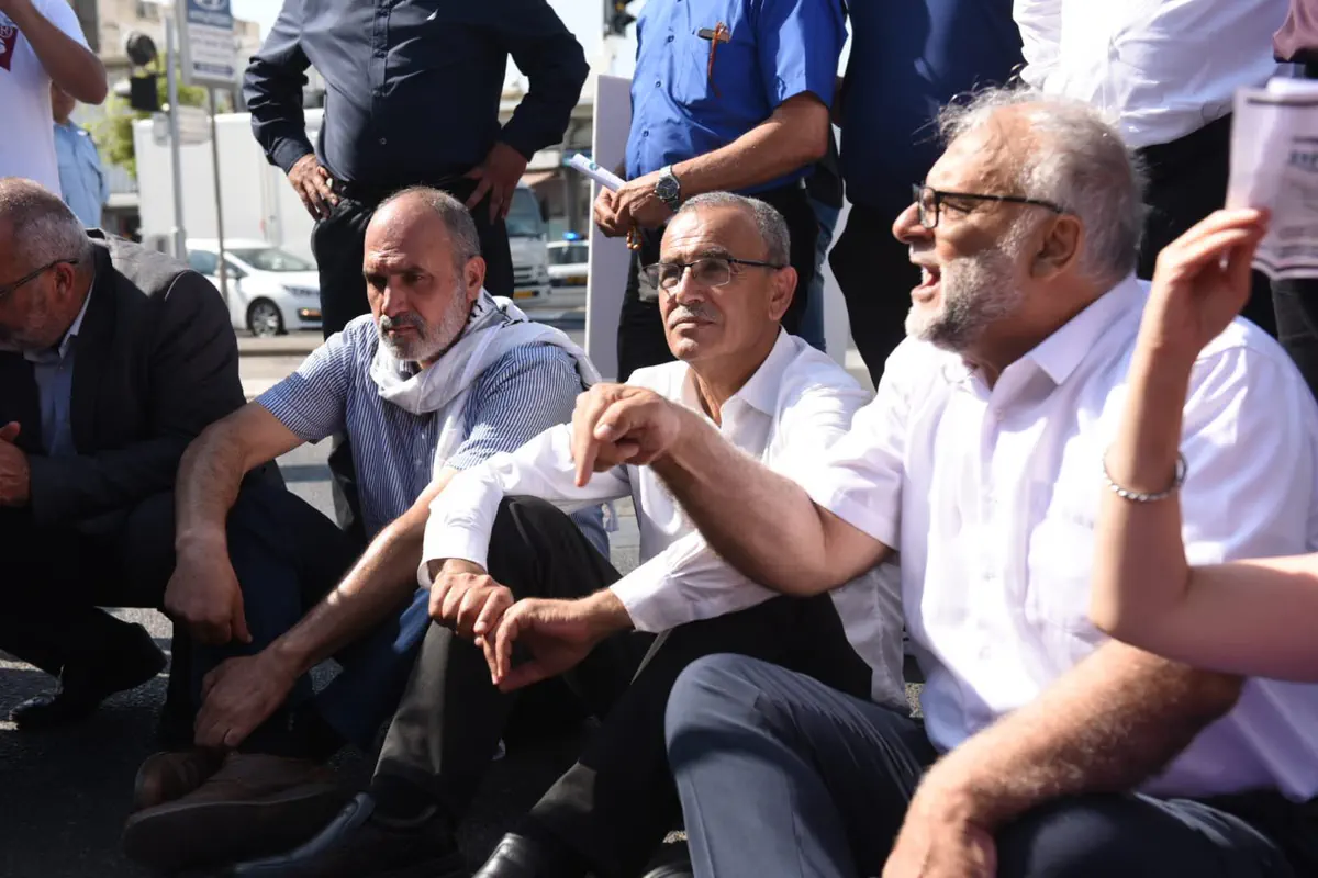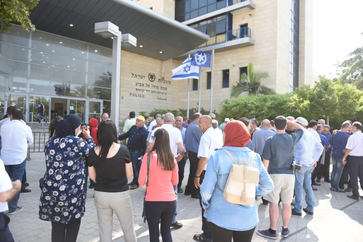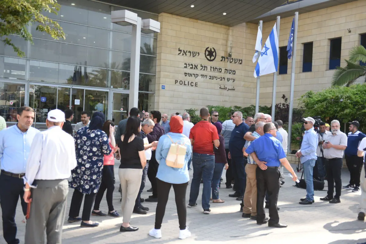 עשרות מערביי ישראל בהובלת חברי כנסת מהרשימות הערביות וחברי ועדת המעקב הפגינו אחר הצהריים (רביעי) מול מטה משטרת מחוז תל אביב במחאה על האלימות הגואה במגזר הערבי.