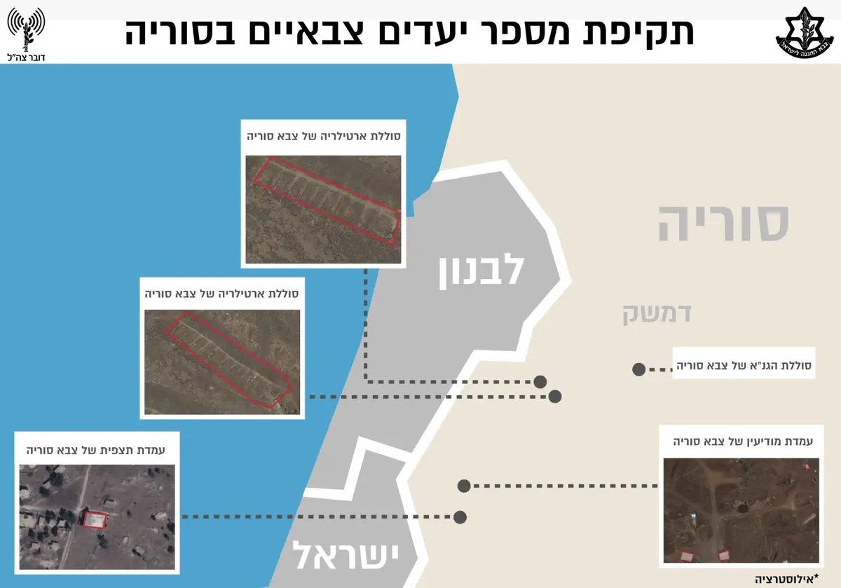 לפי ההודעה, מטוסי קרב ומסוקי קרב של צה"ל תקפו מספר יעדים צבאיים השייכים לצבא סוריה ובהן שתי סוללות ארטילריה, מספר עמדות תצפית ומודיעין בחזית רמת הגולן וכן סוללת הגנה אווירית מסוג SA-2.