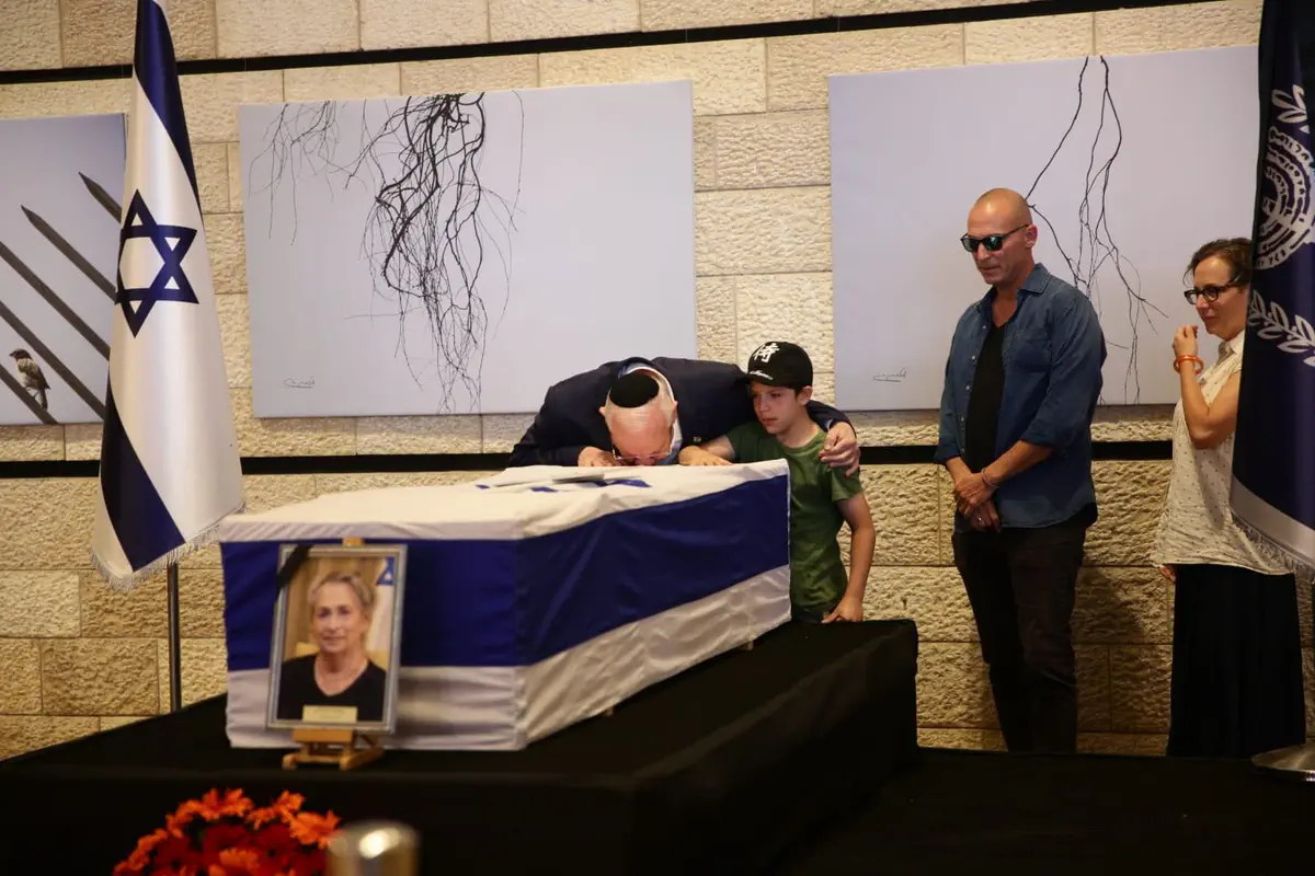 ריבלין חלף על פני הארון לצד ילדיו ואמר תודה רבה לכולם על מילות התנחומים. "אני מודה להתייחסות של כל הציבור לאישה כל כך נפלאה", אמר.