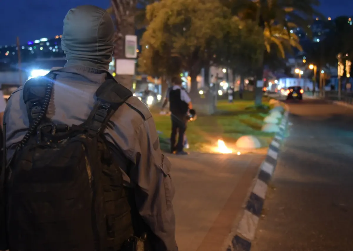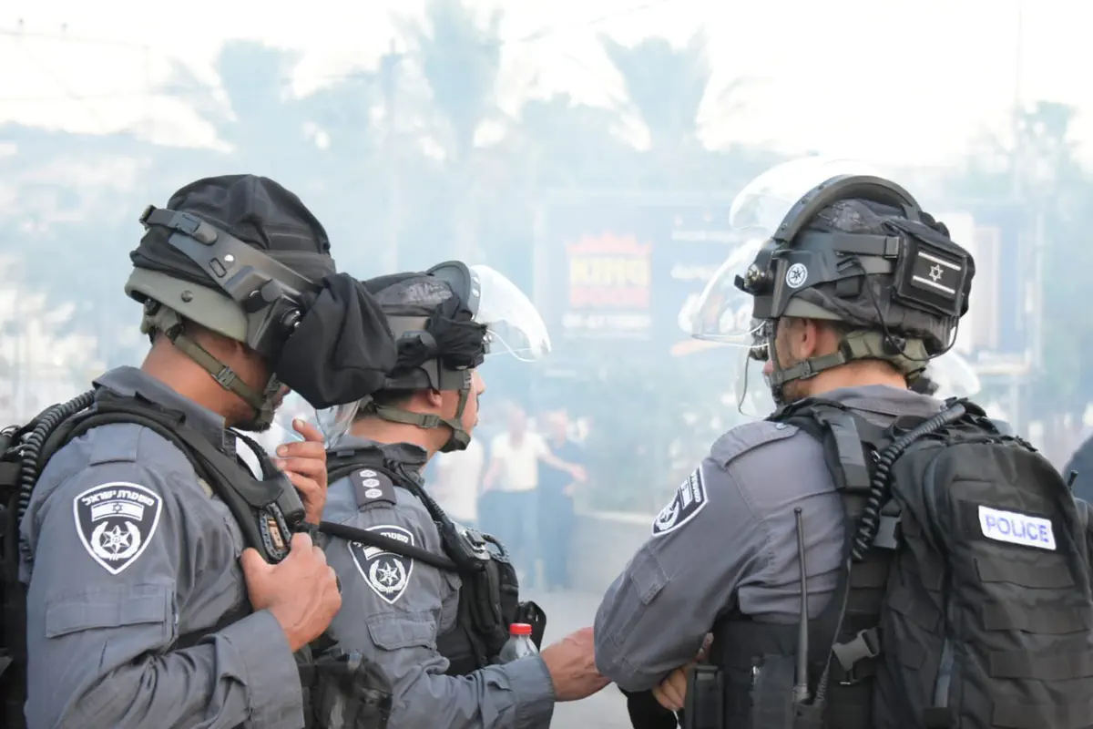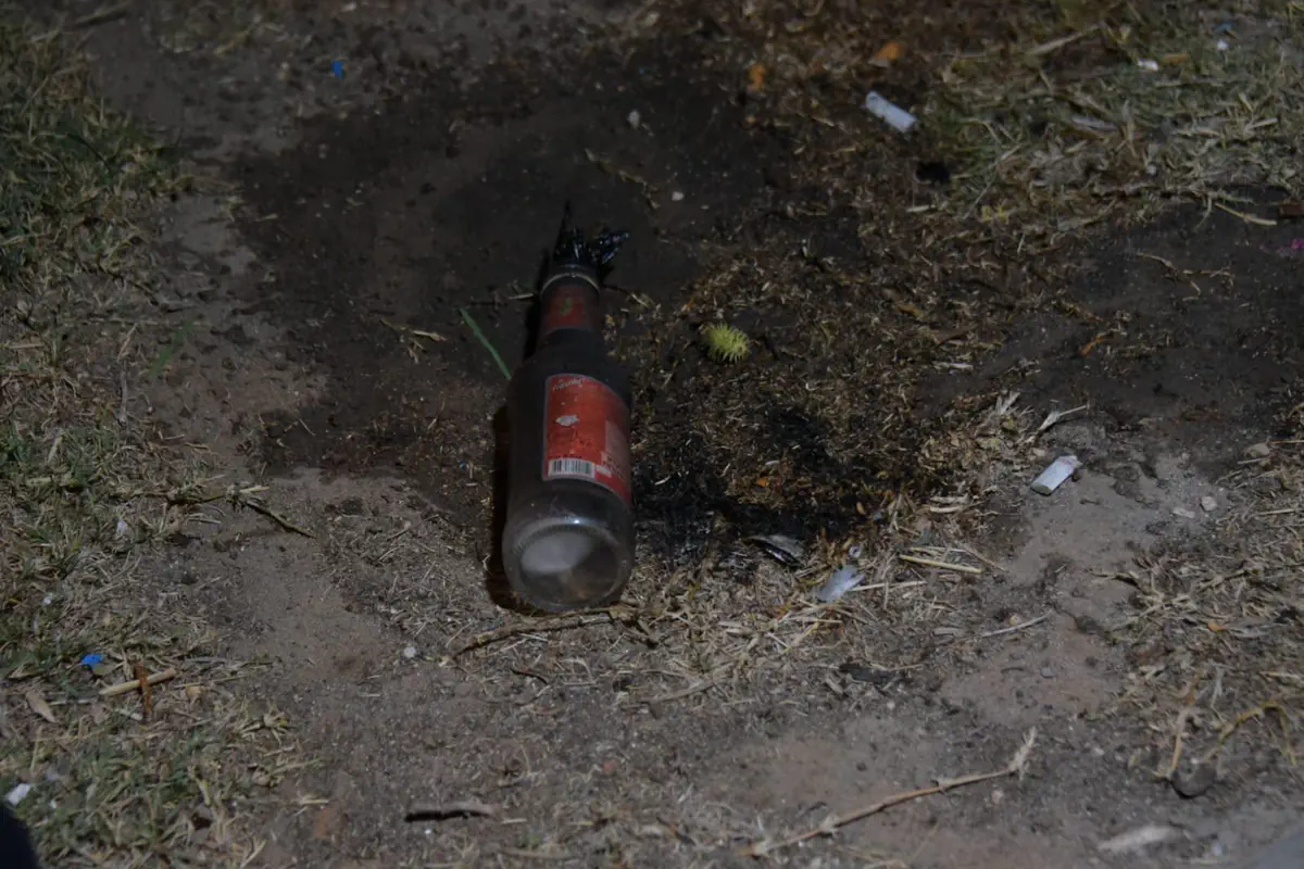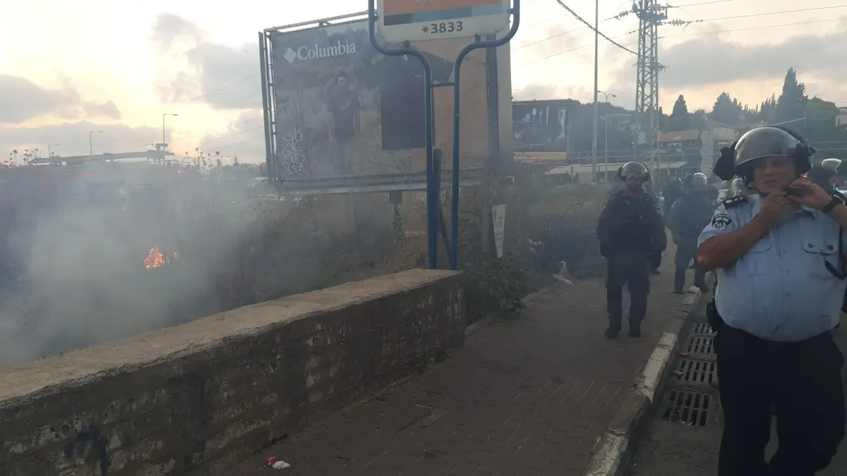 בהפגנה נזרקו בקבוקי זכוכית, אבנים ובקבוק תבערה לעבר כוחות המשטרה.