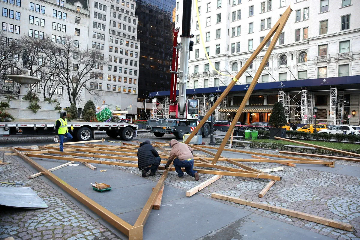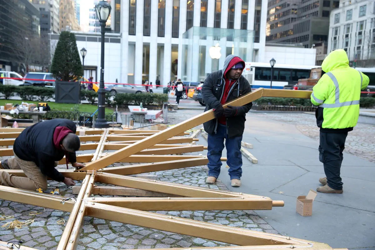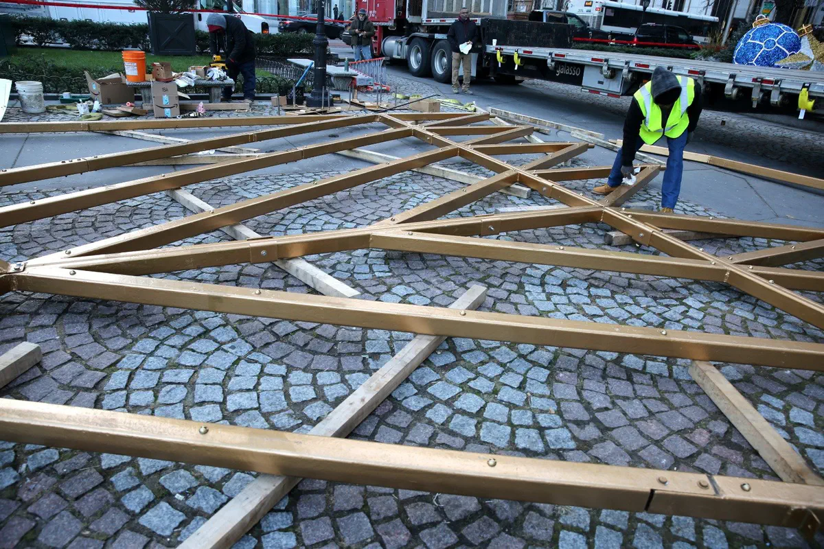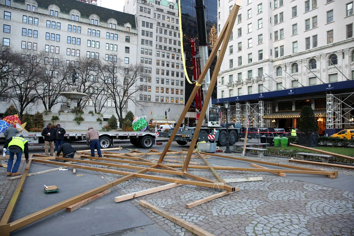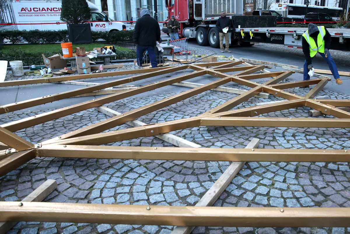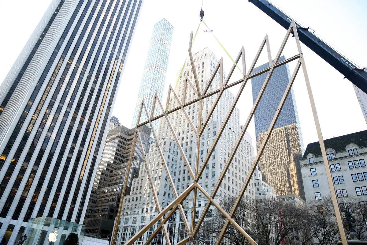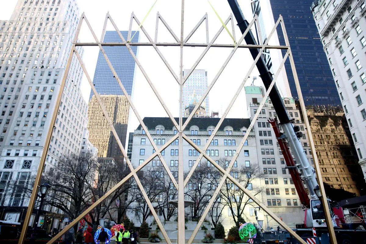החנוכייה הגדולה בעולם, המוצבת מדי שנה בלב מנהטן על ידי חב"ד, הוקמה בימים האחרונים באמצעות עשרה פועלים, משאית ומנוף ענק.