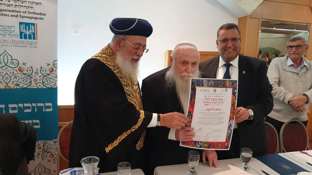 את האותות העניקו רב העיר ירושלים הרב שלמה משה עמאר וראש עיריית ירושלים משה ליאון.