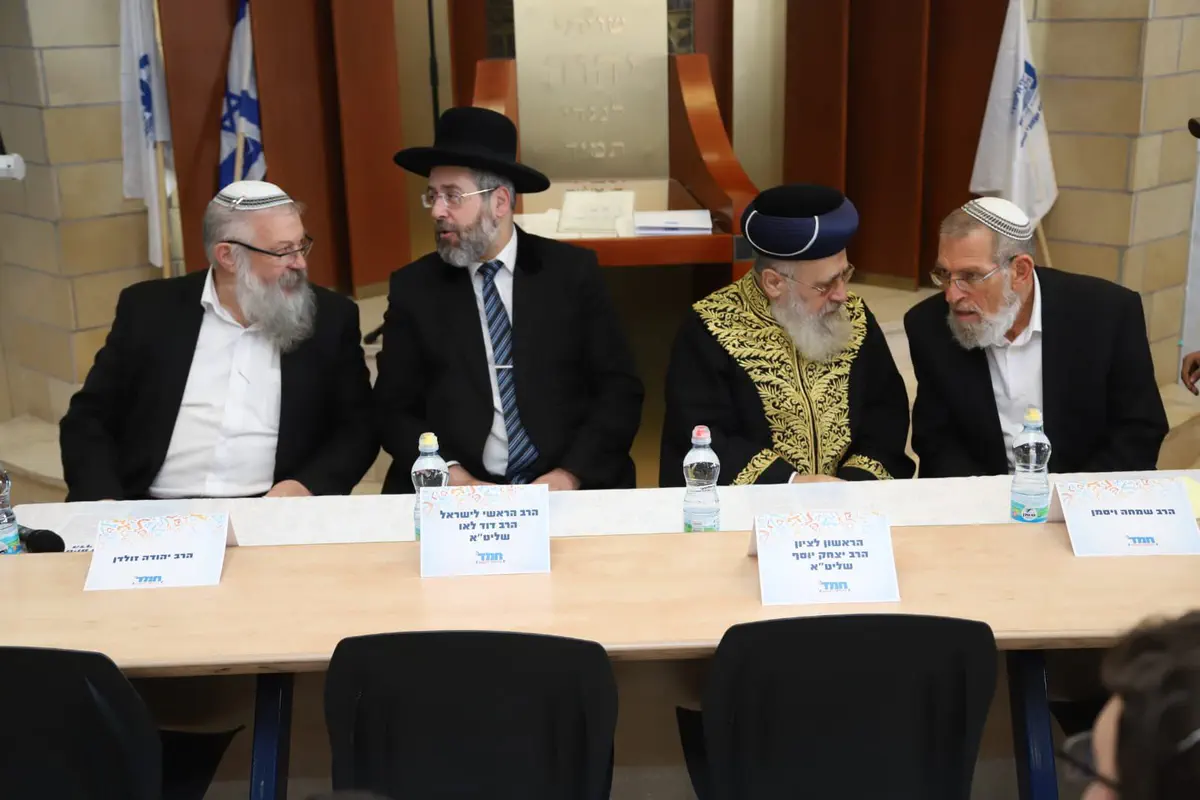 מעמד סיום הש"ס של החמ"ד נערך הבוקר (חמישי) במעמד הרבנים הראשים לישראל, הרב דוד לאו והרב יצחק יוסף.