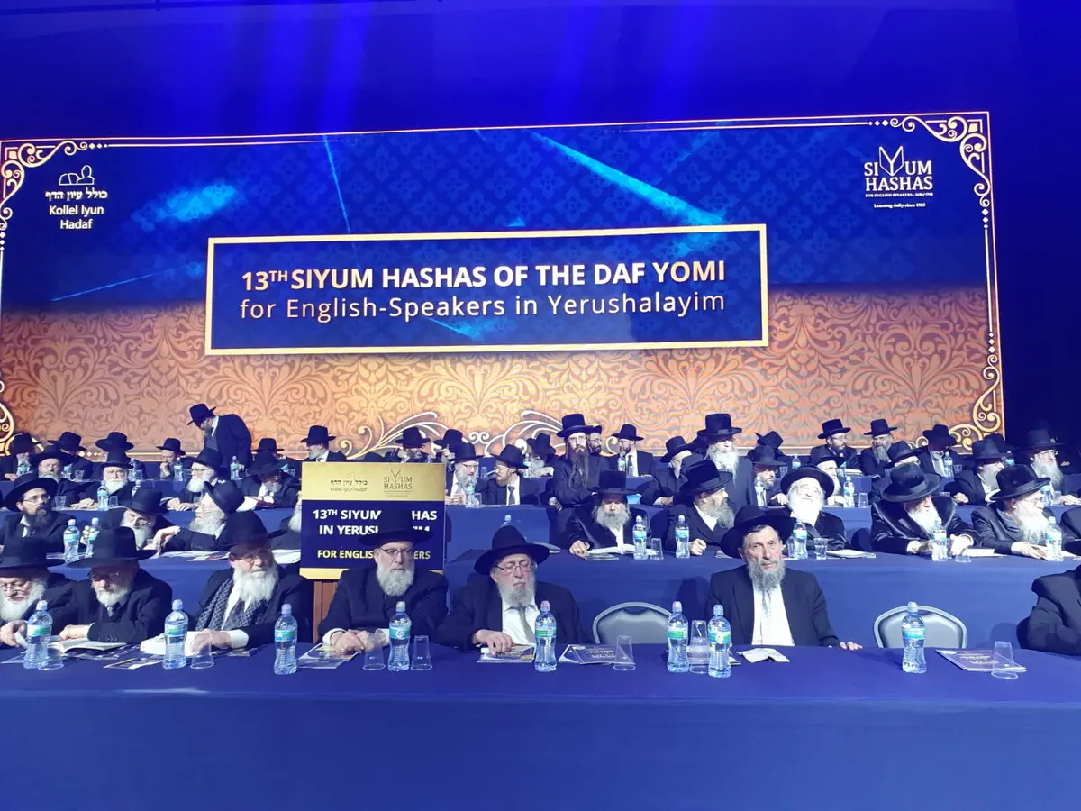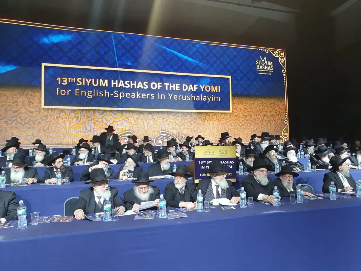 קרוב ל-8000 בני אדם, גברים ונשים, גדשו את כל האולמות במתחם בנייני האומה בירושלים באירוע סיום הש"ס לדוברי אנגלית בישראל.