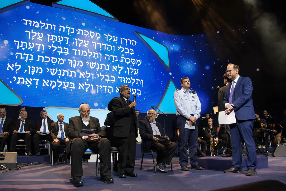 אלפי בני אדם השתתפו הערב (חמישי) באירוע סיום הש"ס המרכזי של הציונות הדתית שהתקיים בבנייני האומה בירושלים.