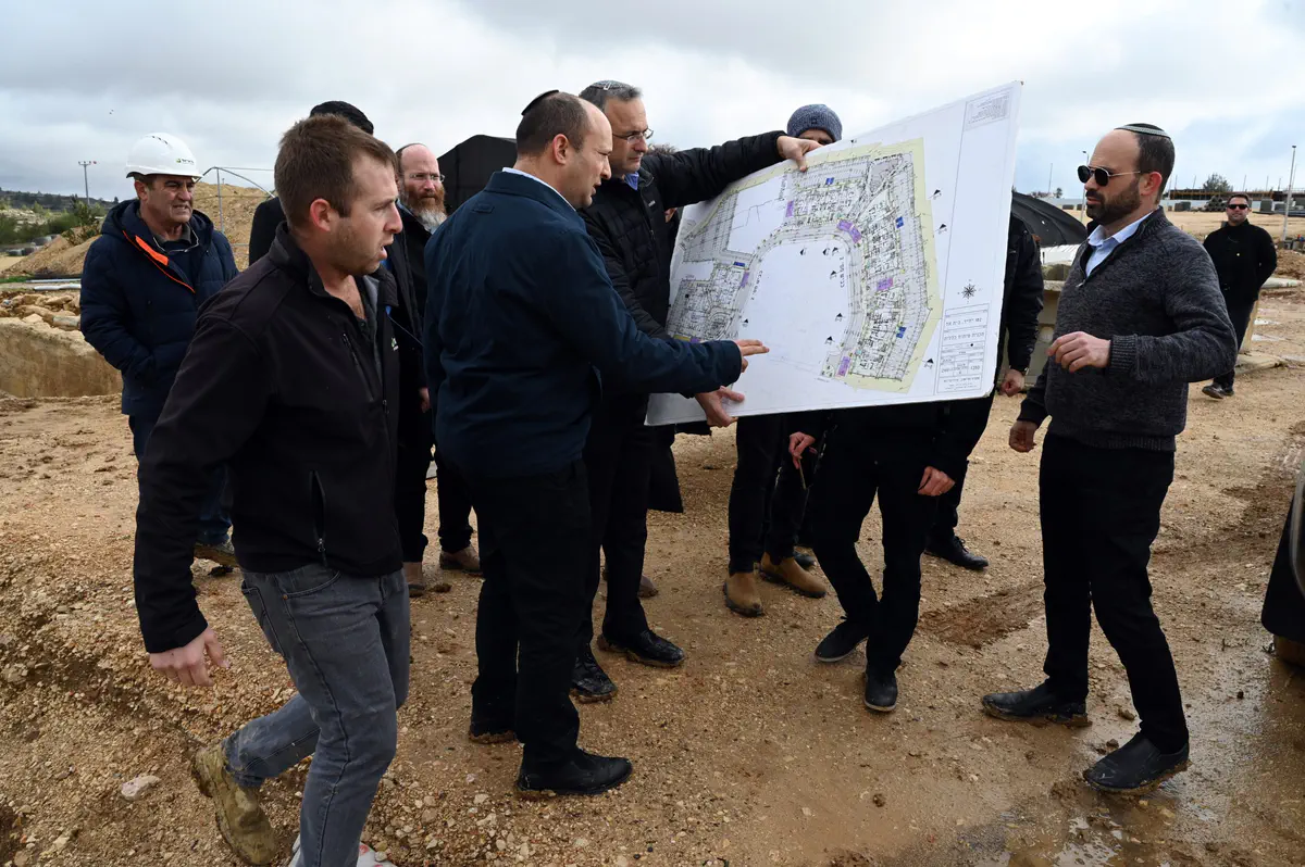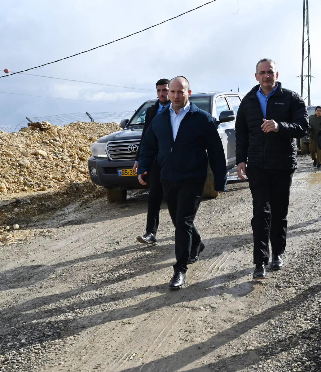 שר הביטחון נפתלי בנט סייר היום (ג׳) במועצה האזורית בנימין, נפגש עם ראש מועצת בית אל שי אלון, ביקר באתר בנייה ביישוב, במרכז ההפעלה ובישיבה הגבוהה בבית אל.