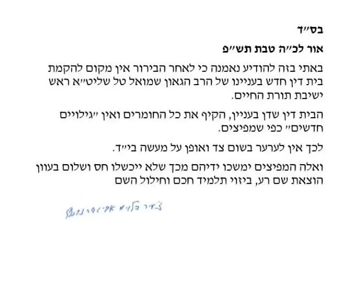כך נאמר לאחר חקירה ודרישה, שכללה את בדיקת כל חומר המחשב של כבוד הרב. אנו סמוכים ובטוחים, שאם היו החותמים חוקרים ודורשים כפי מעשי בית הדין – לא היו חותמים על מעשה הכיעור ועל מכתב הבלע. מצערת לא פחות היא העובדה, שכלי תקשורת המונית רציני כמו וואי נט, מפרסם חשדות שלא התבררו מעולם כדין – משל עובדות היו".