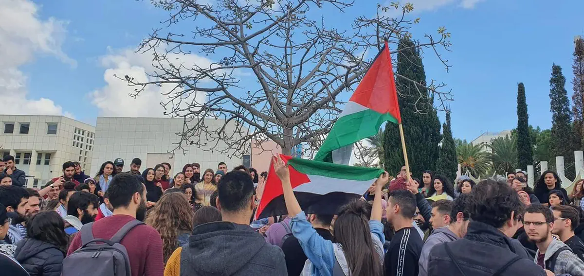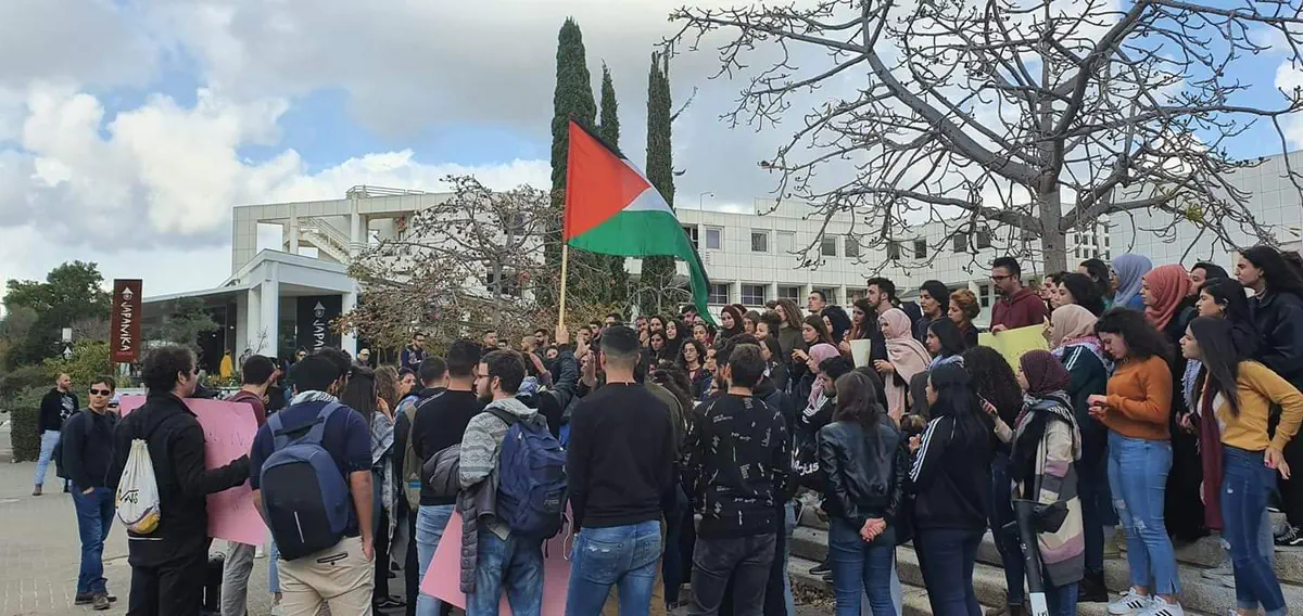 סטודנטים ערבים חברי תא הרשימה המשותפת הפגינו היום (רביעי) נגד תכנית המאה של הנשיא טראמפ המבקשת להחיל ריבונות על ישובים ביהודה ושומרון.