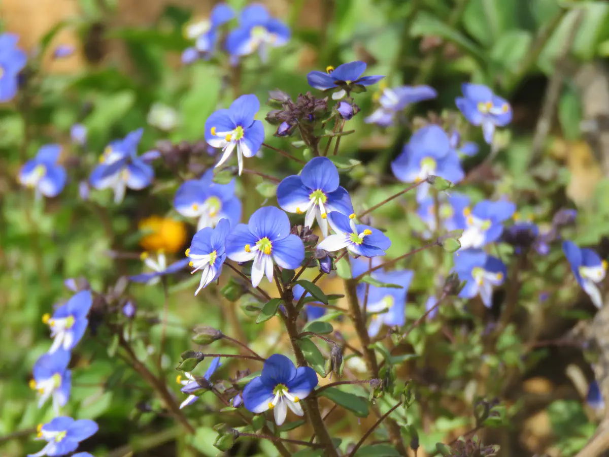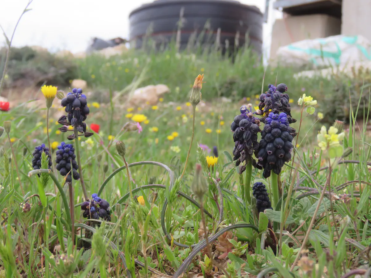 דוגמאות למיני צומח על סף איום/נדירים - מרווה כחולה, תודרה מזרחית, ארבע כנפות-צהובות, טופח כדורי- הגפן.