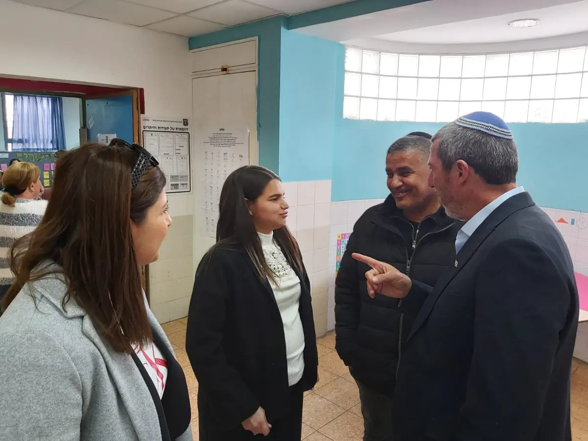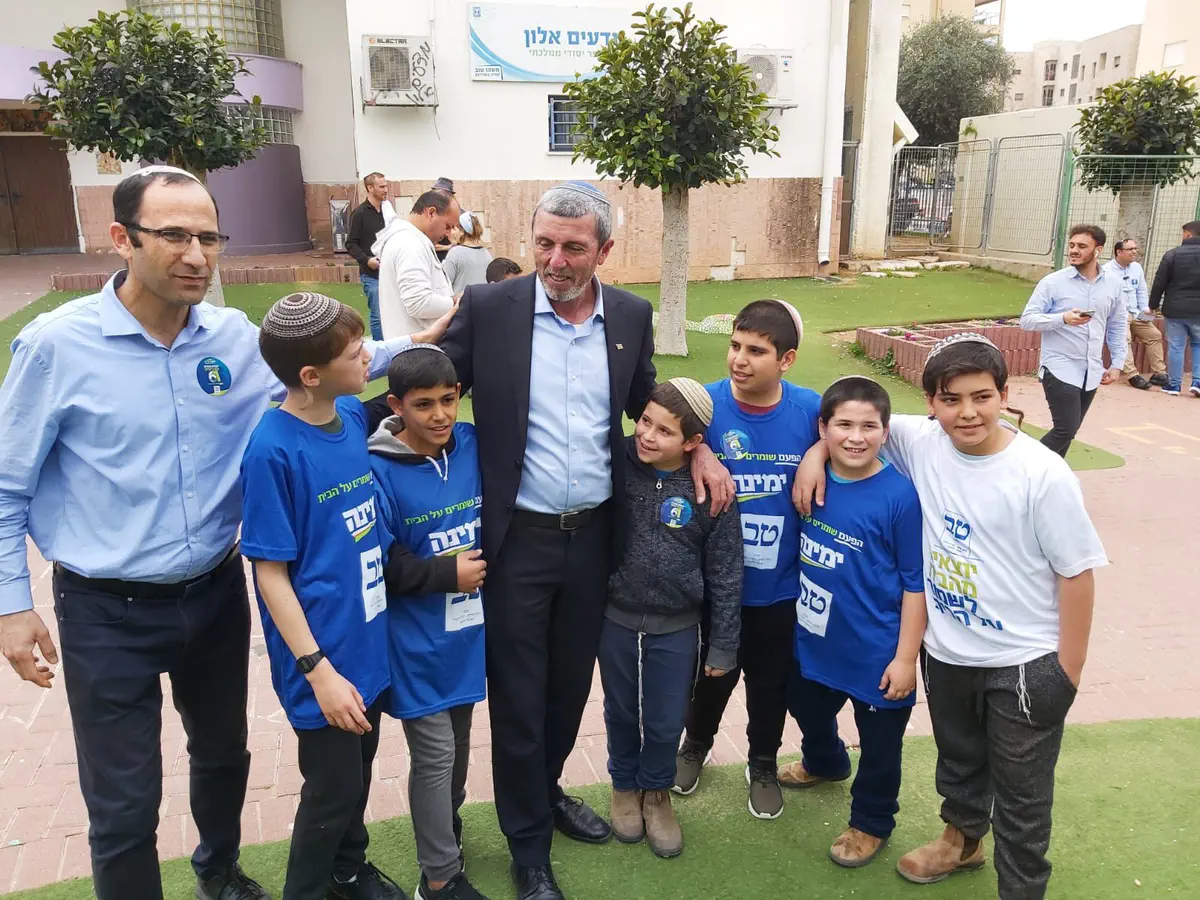 שר החינוך הרב רפי פרץ (ימינה) המשיך בצהריים (שני) את המסע להמרצת מצביעים ברחבי הקלפיות באזור הדרום.