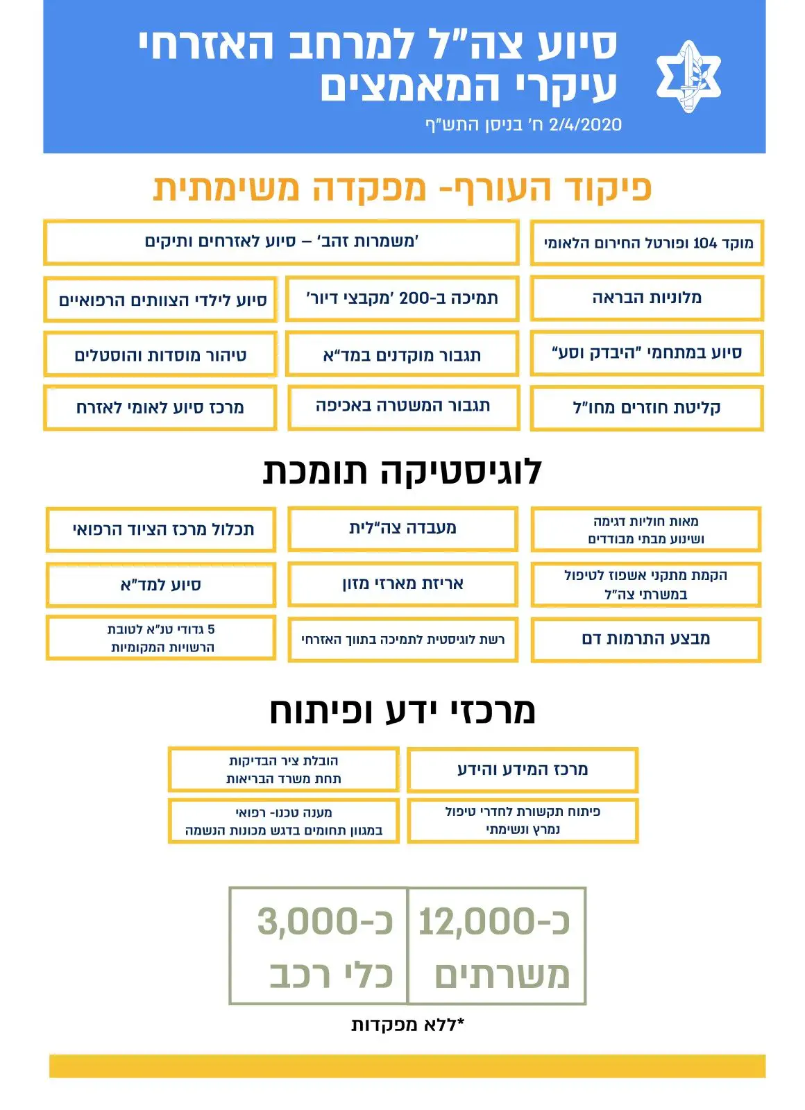 כ-15 אלף חיילים לוקחים חלק במאבק הלאומי נגד מגפת הקורונה ומסייעים בפינוי חולים, אספקת מזון ואכיפה משטרתית בכל רחבי הארץ.