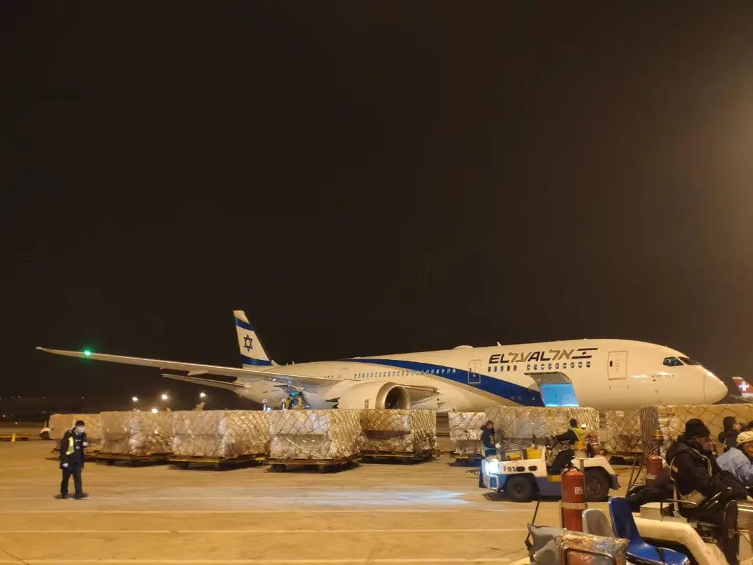בנמל התעופה בן-גוריון נחת הבוקר (שני) מטוס אל על הראשון ברכבת האווירית מסין, כשעליו כ-20 טונות של ציוד מיגון חיוני לצוותים רפואיים.