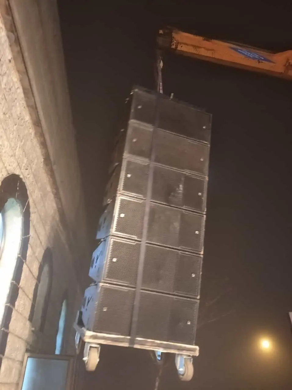 מערכת ההגברה הועלתה על גג בית הכנסת באמצעות מנוף, ועוצמתה נשמעה בכל רחבי יצהר, בגבעות ובשכונות סביב היישוב.