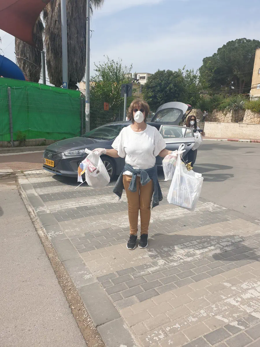 כל המתנדבים והחיילים העניקו פרח לניצולים, מסכות מיגון לימי קורונה וסל מזון צנוע.