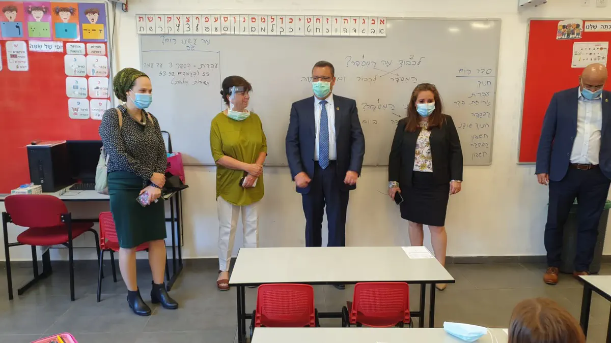 ראש העיר ירושלים משה ליאון, סגנית ראש העיר ומחזיקת תיק החינוך חגית משה, מנכ"ל העירייה וראש מינהל החינוך בעיריית ירושלים הגיעו הבוקר (ראשון) לבית הספר פולה בן גוריון בעיר.
